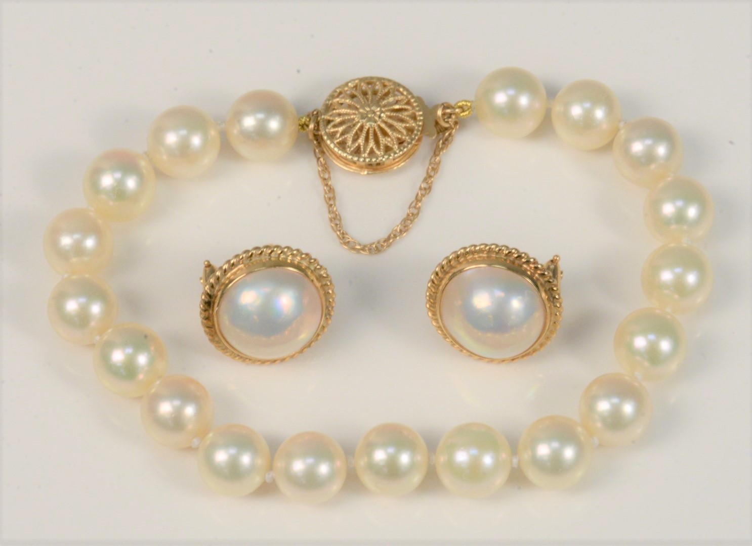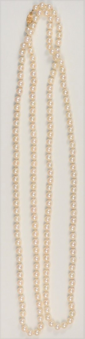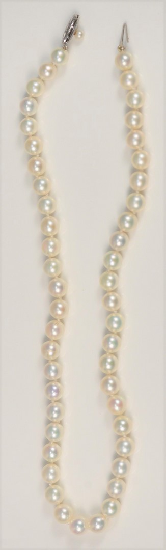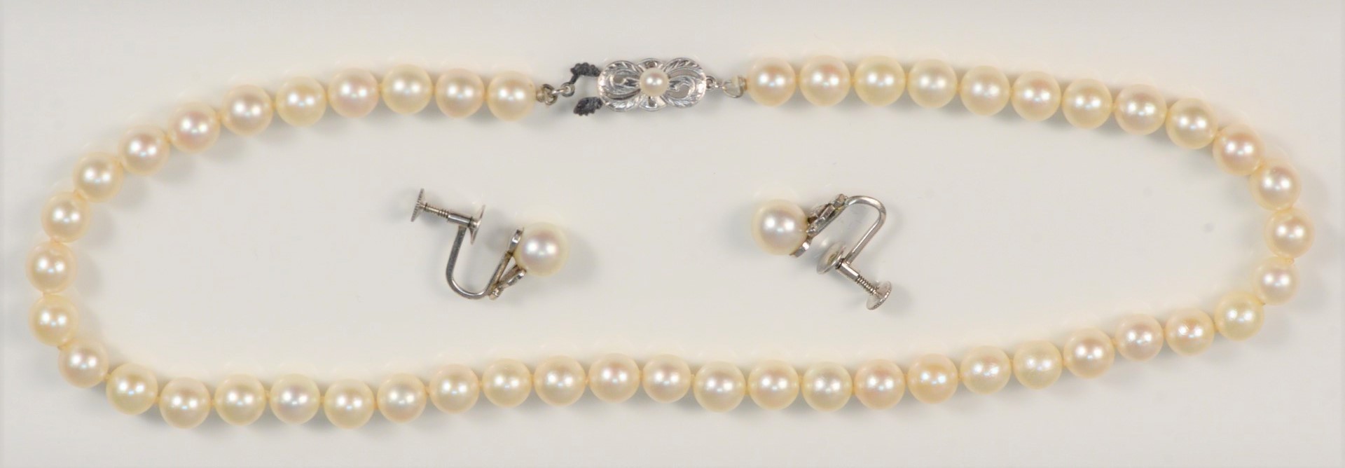 to include single strand of pearls, with mikimoto pearl screw back earrings, necklace with 14 karat white gold clasp