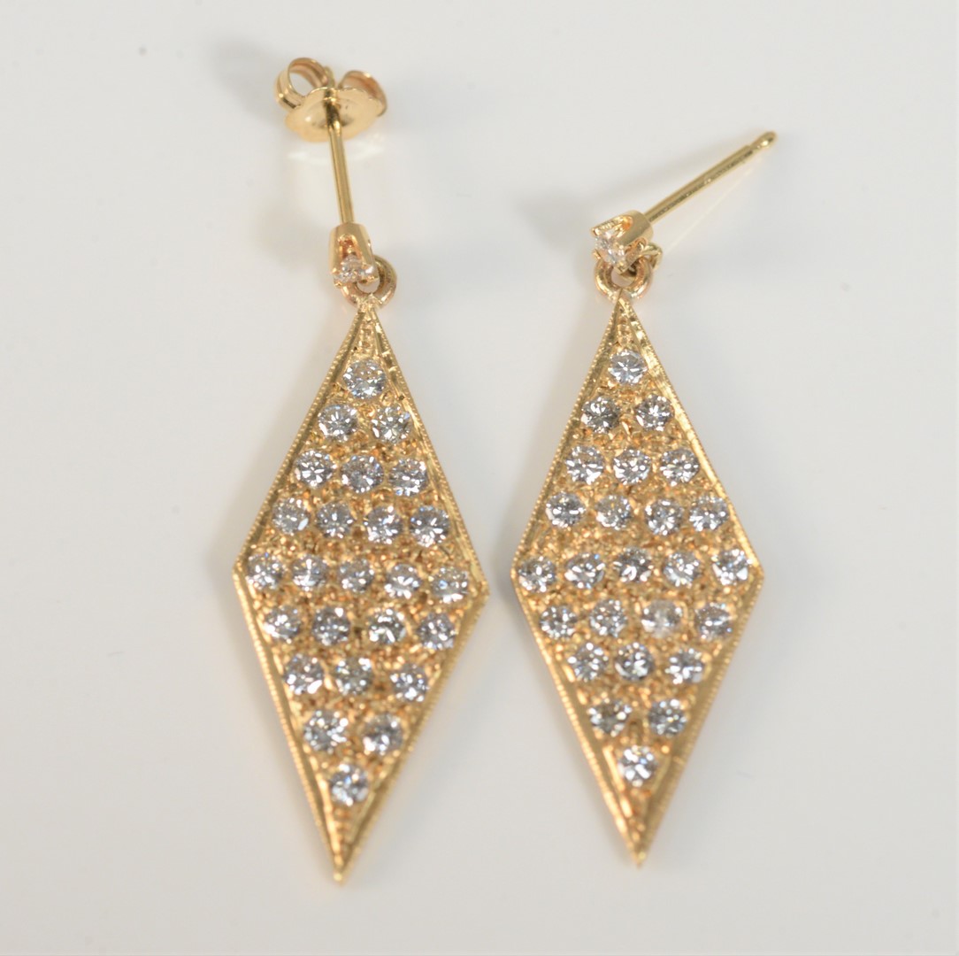each with triangular, 14 karat gold, mounted with twenty-five diamonds