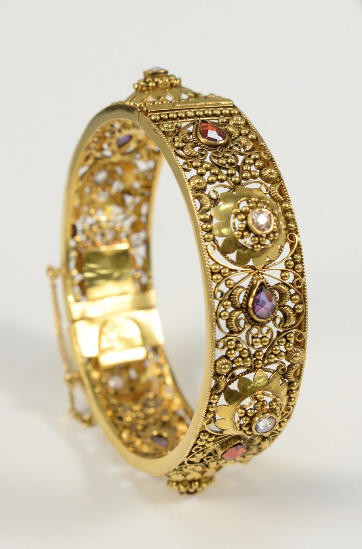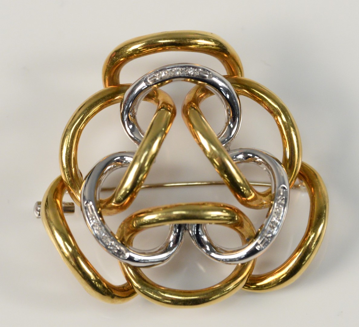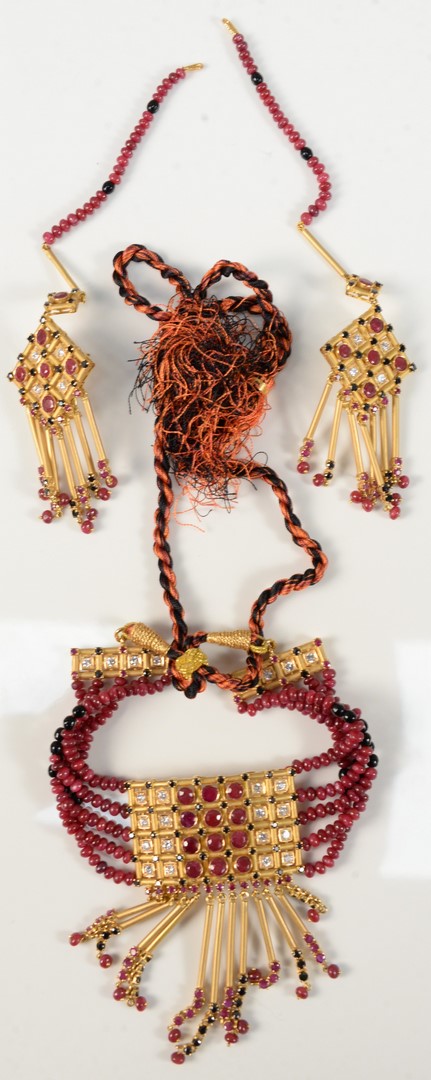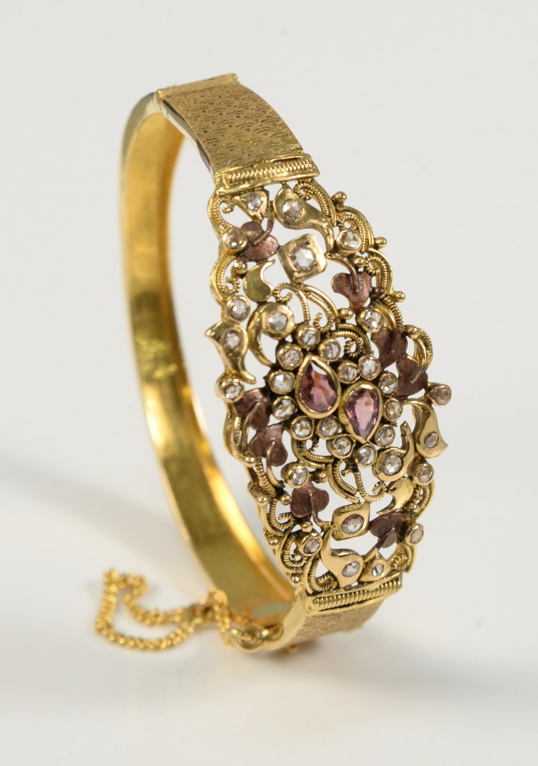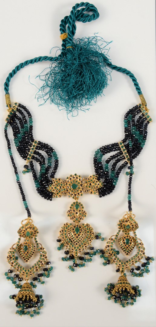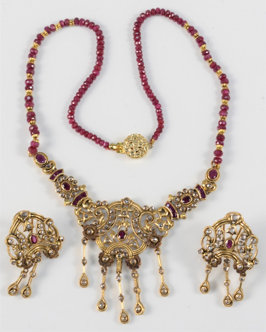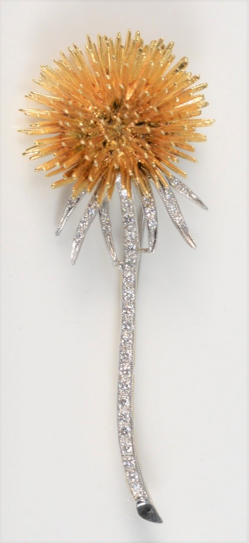 six fern leaves set with diamonds and gold tassels, approximately one hundred fourteen diamonds