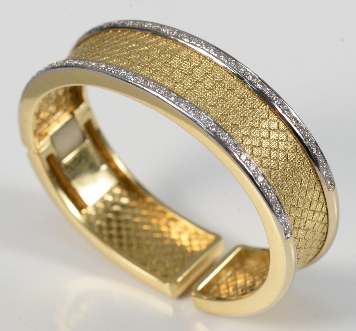 set with sixteen diamonds, having 18 karat gold mesh band, in original Tiffany & Company box