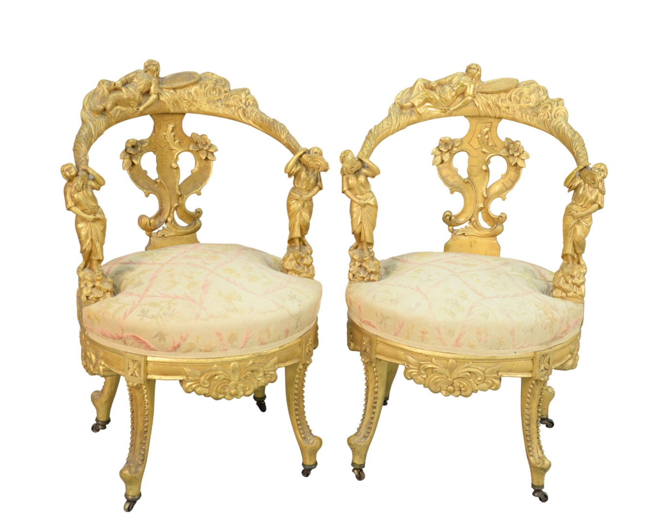 each modeled as a Chinoiserie figure, seated atop C-scroll, and rocky ledge