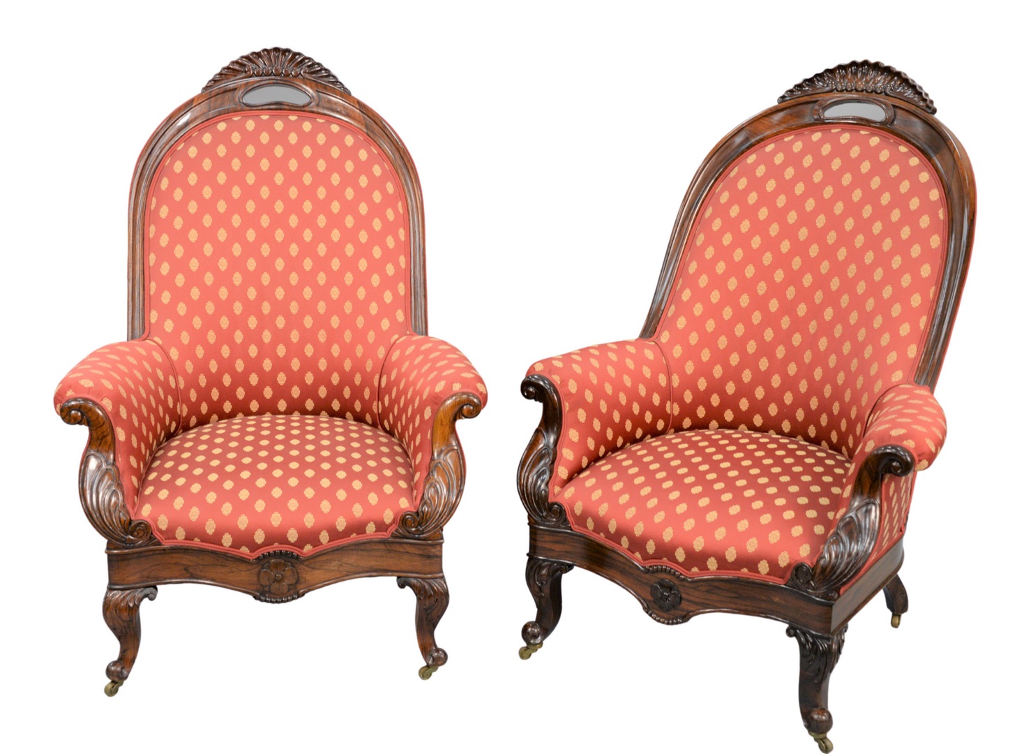 having large top center shell, flanked by foliate carving over carved dog heads at bottom, all original gilt