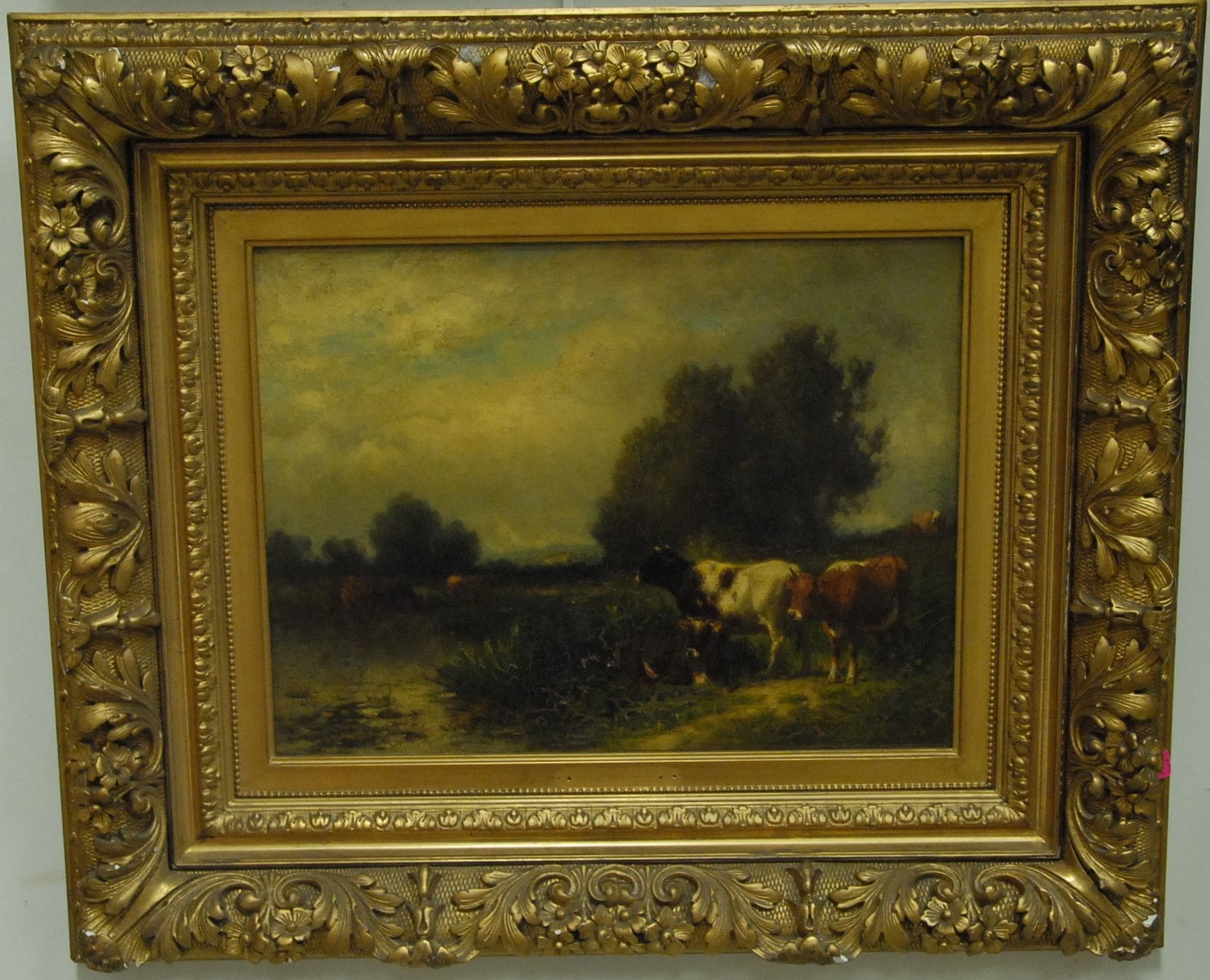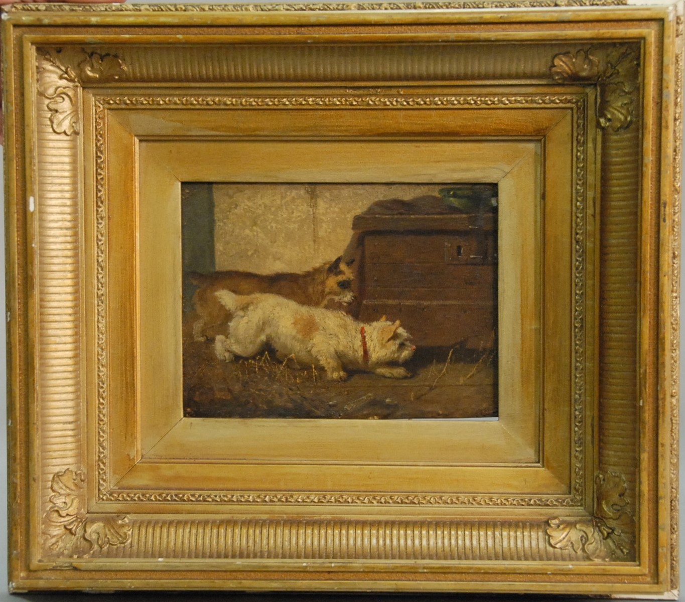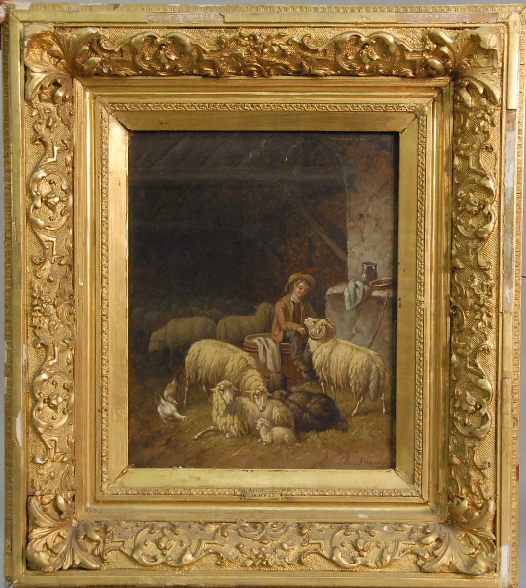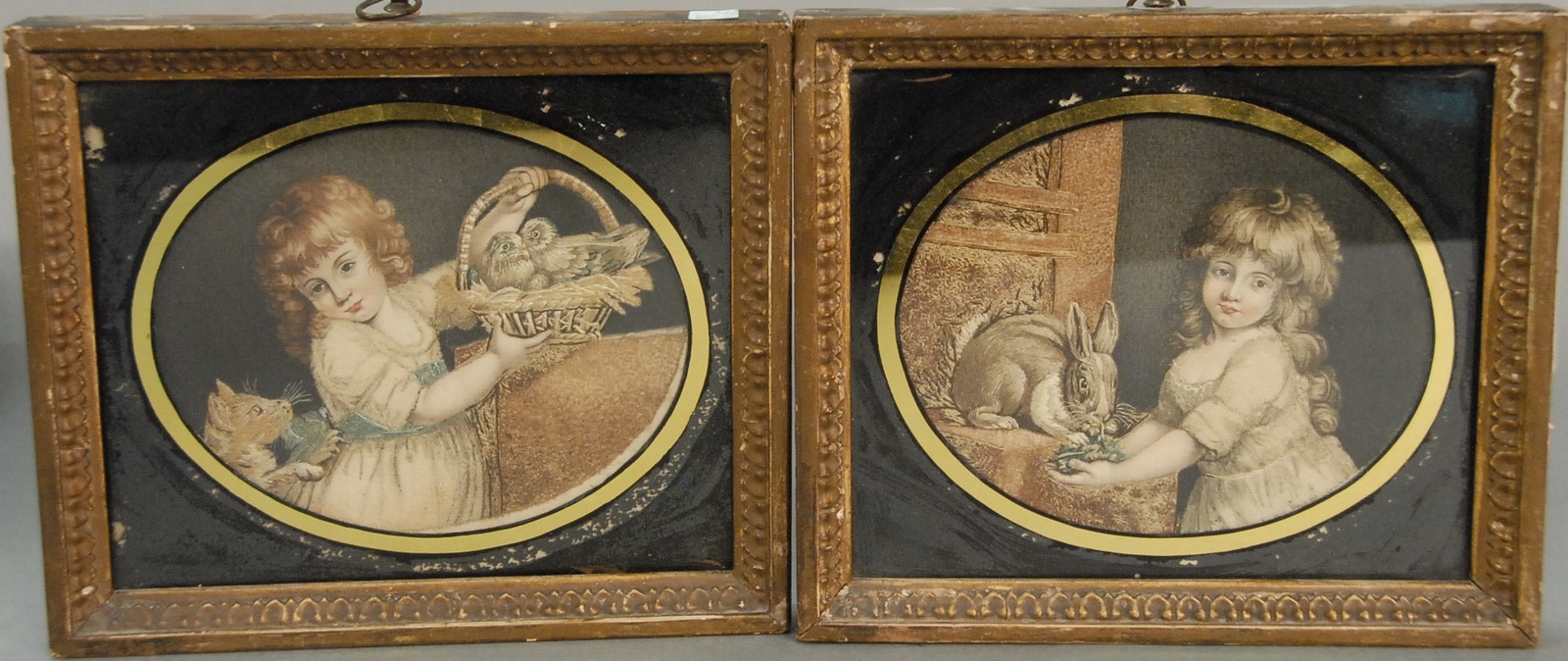 Pair Claude Guilleminet 1821-1860 CHICKENS AND TURKEY IN BARN CHICKENS AND PHEASANT IN BARN pair of oil on board paintings signed lower left Guilleminet 10 x 8