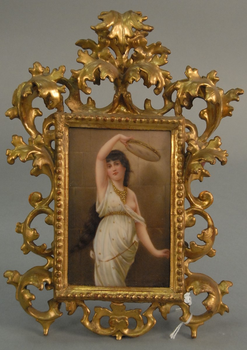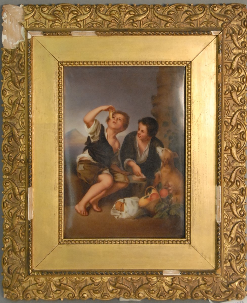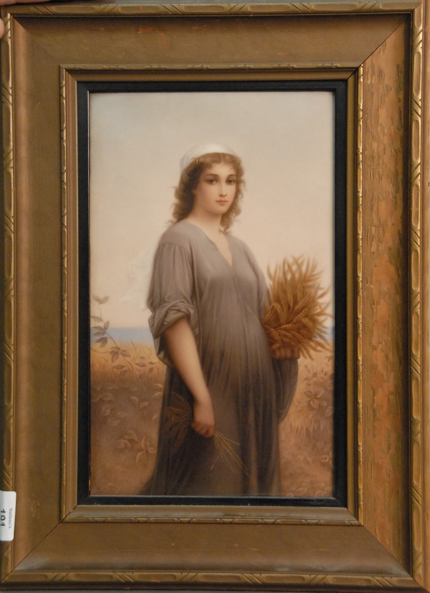 K.P.M. porcelain painted plaque RUTH Harvesting grain After Landelle 1821-1908 signed on verso KPM H. written Ruth after Landell full Frz. X. Thallmaier label on reverse 13 x 8