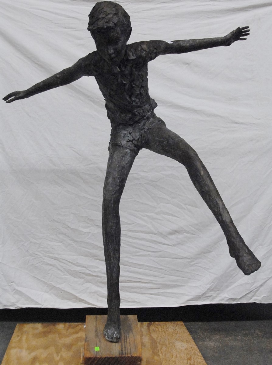 Dennis Smith THE BALANCING BOY Bronze sculpture 6/9 now with wood stand ht. 54 in. Provenance: Purchased from Knox Gallery, Vail Colorado, Agent for Dennis Smith