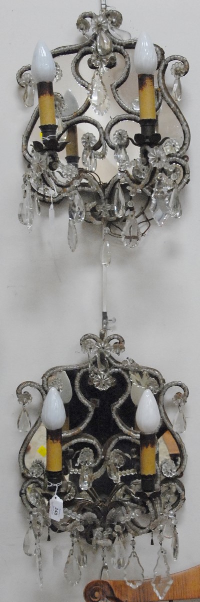 Set of four mirror back sconces with scroll crystal decoration. ht. 17 in. Provenance: Property from The Estate of Margaret Oliphant of Old Lyme, Connecticut