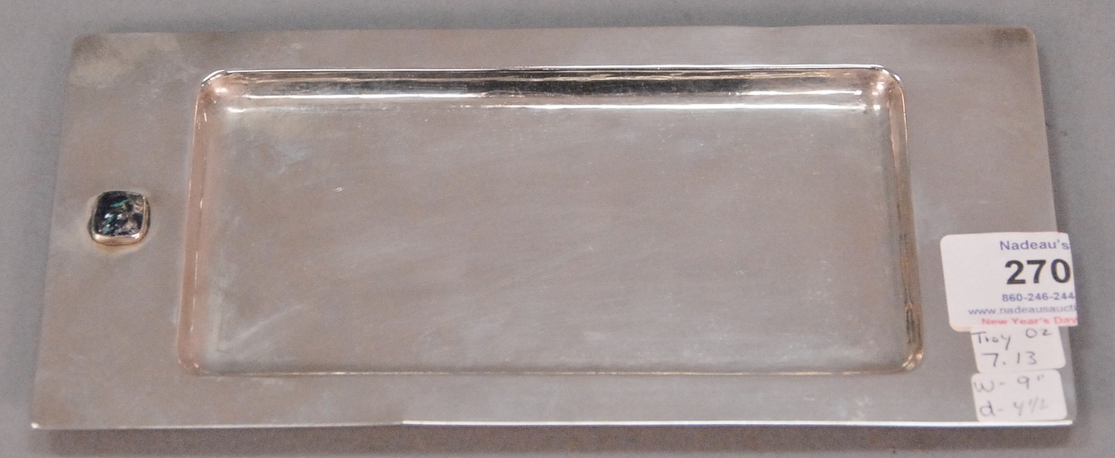 Kalo Shops sterling silver Arts and Crafts tray, marked on bottom Sterling Hard Wrought at The Kalo Shops Chicago and New York 480. 7.1 t oz. lg. 9 wd. 4 1/2