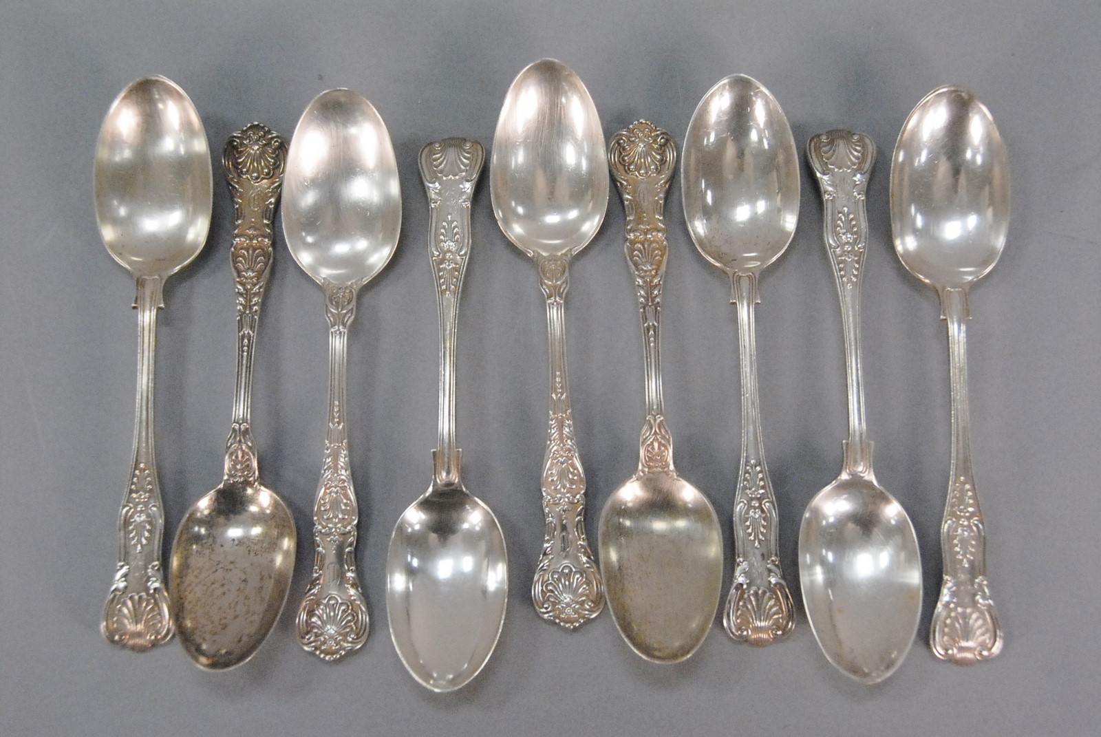 Group of nine sterling spoons, English King pattern, five Creighton and four Gorham. 17.8 t oz. Provenance: Property from The Estate of Margaret Oliphant of Old Lyme, Connecticut
