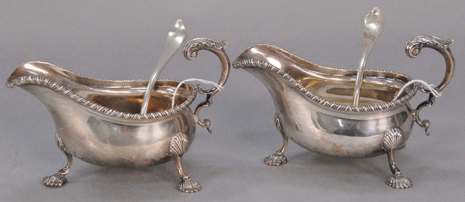 Pair of Crichton silver gravy boats and ladles, each having scrolled handles and scallop legs and feet. 25.3 t oz. Provenance: Property from The Estate of Margaret Oliphant of Old Lyme, Connecticut