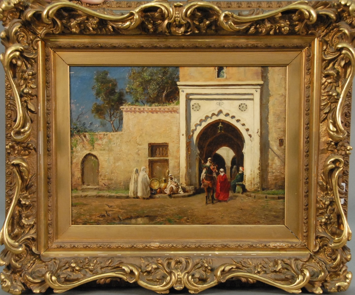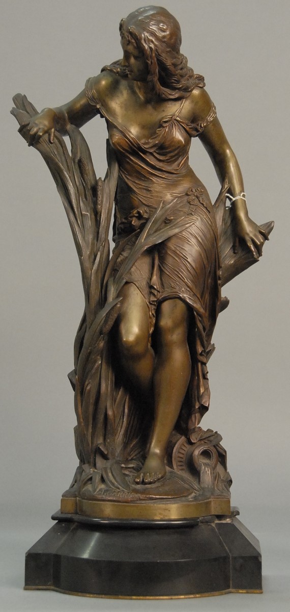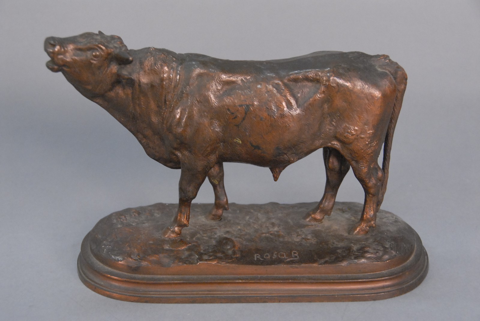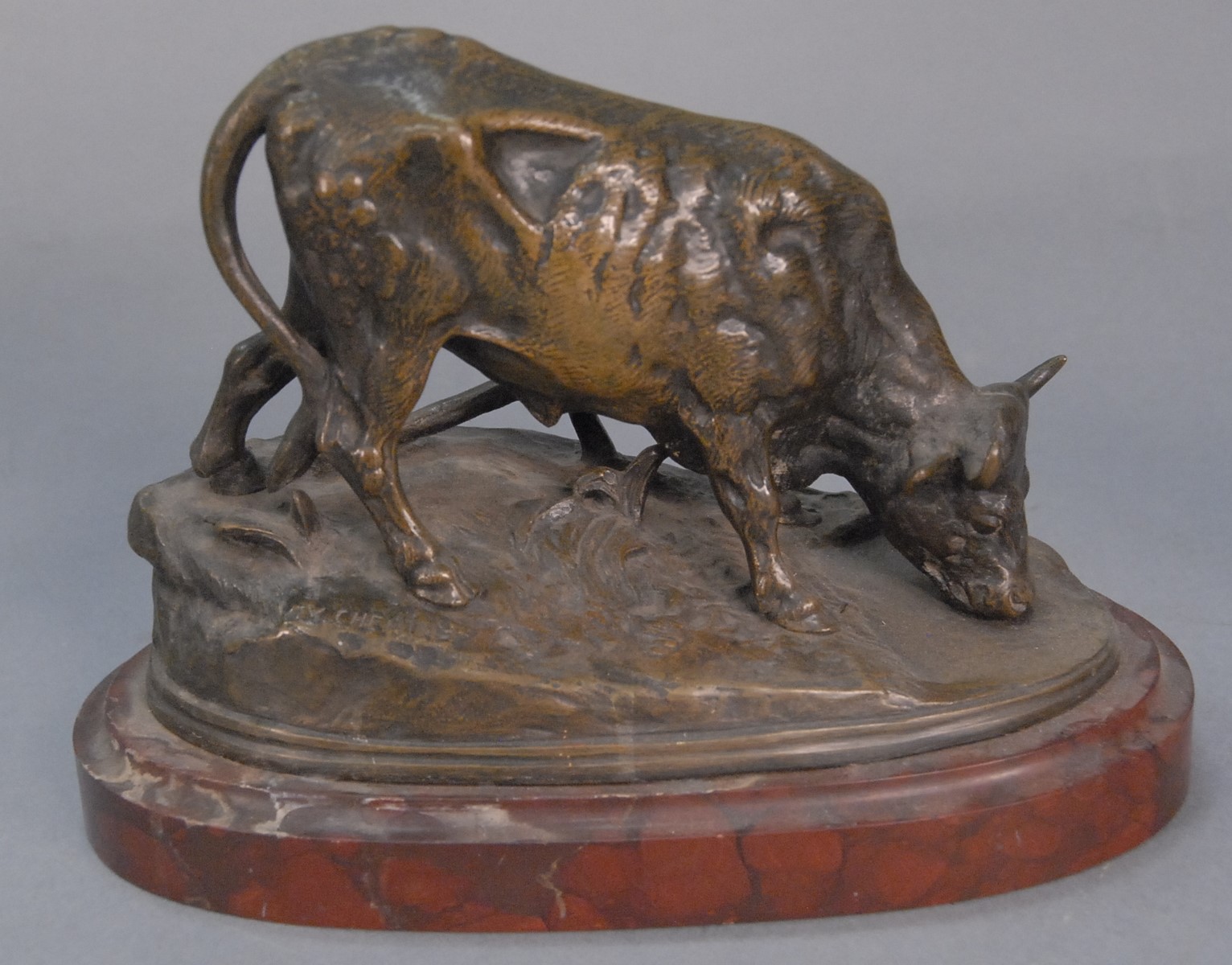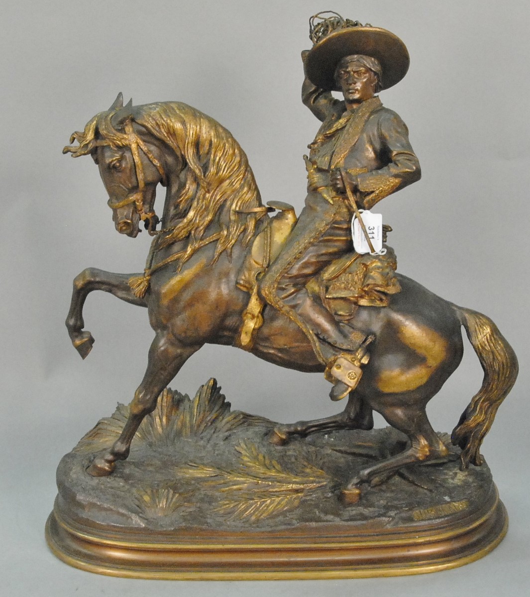 Bronze sculpture with gilt highlights, Alfred Dubacand 1828-1894, Cavalier Mexican AuLasso resting on bronze base, marked in base Dubacand. ht.23 in lg. 20 in.