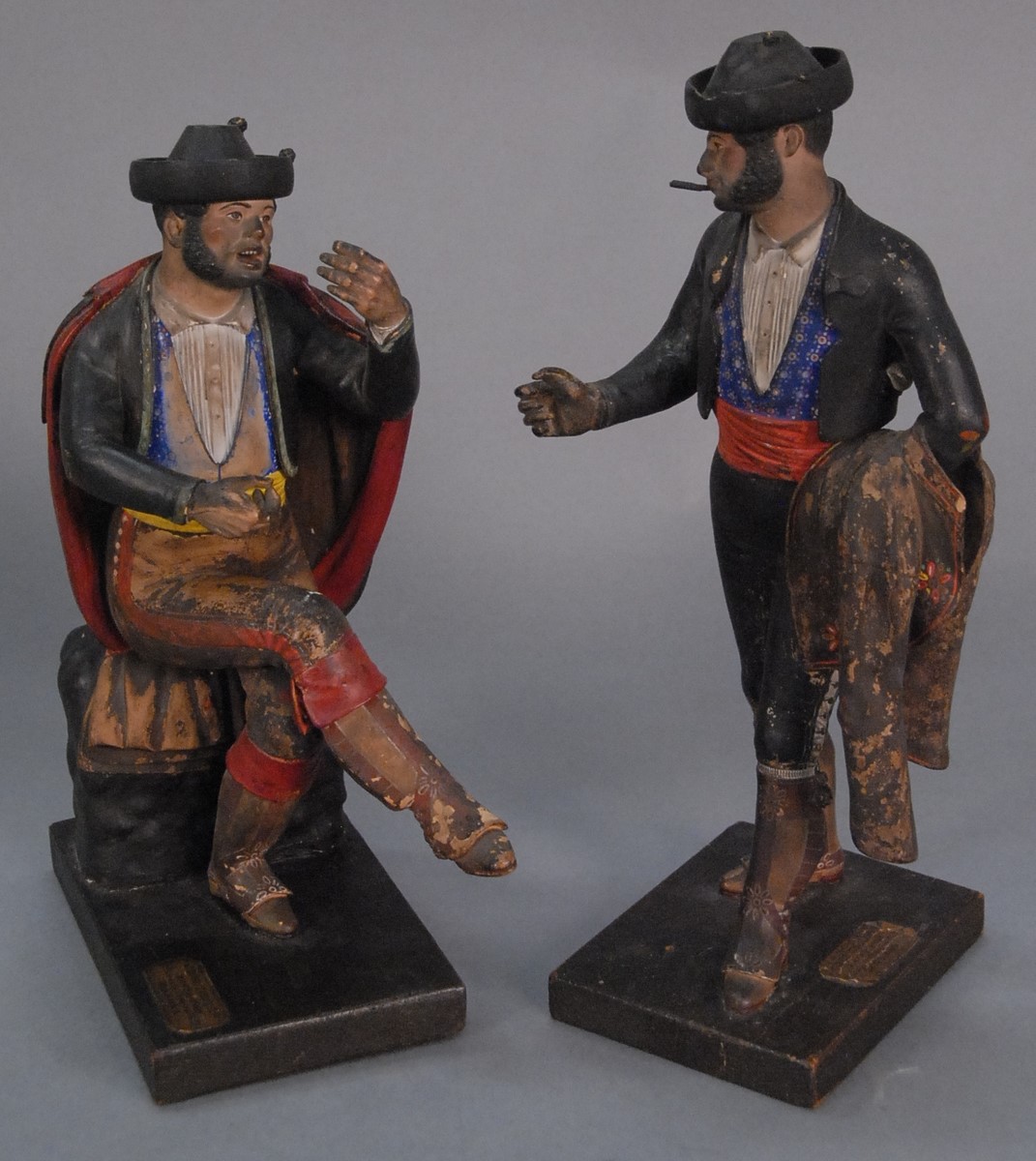 Jose Cubera pair of Spanish polychrome earthenware figures having label Jose Cubera pasaje de Heredia, Malagaa minor paint loss. ht. 10 1/2 in. & ht. 11 1/2 in. Provenance: Property from a Private Collection Sold for the Benefit of the Virginia Historical Society.