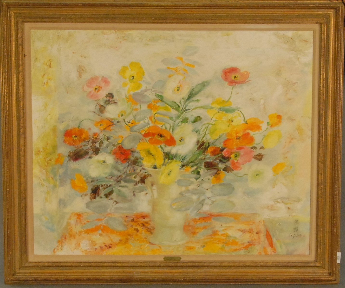Le Pho 1907-2001 POPPIES oil on canvas signed lower right Le Pho Wally Findley Galleries label on verso 32 x 39 1/2 being sold with original Wally Galleries bill of sale 1967 and brochure along with Findley guarantee of the painting.