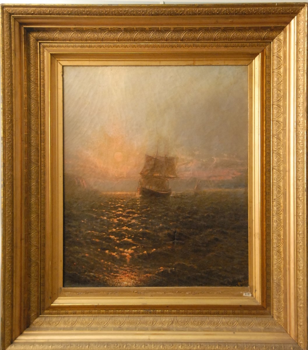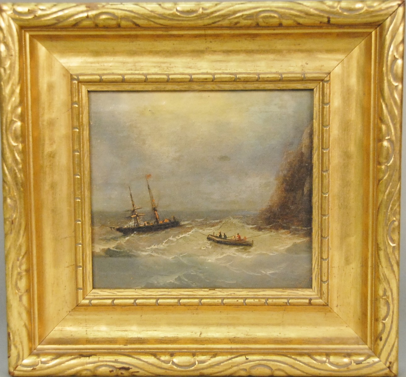 Circle of Ivan Konstantinovich Aivazovsky 1817-1900 SURVIVORS OF SHIPWRECK oil on canvas mounted on wood panel marked lower right Aivazovsky 7 3/4 x 8 1/2