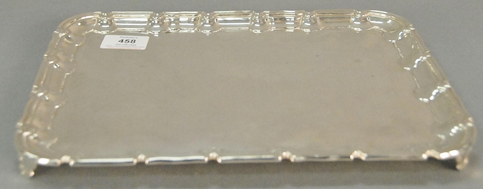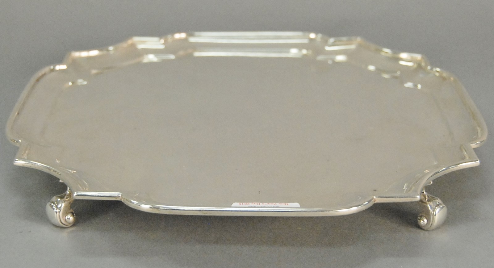 Sterling silver footed salver with Chippendale edge, marked on bottom Goldsmiths & Silversmiths Company, 112 Regent Street. ht. 1 1/2 in. top: 12 x 12 34.52 t oz.