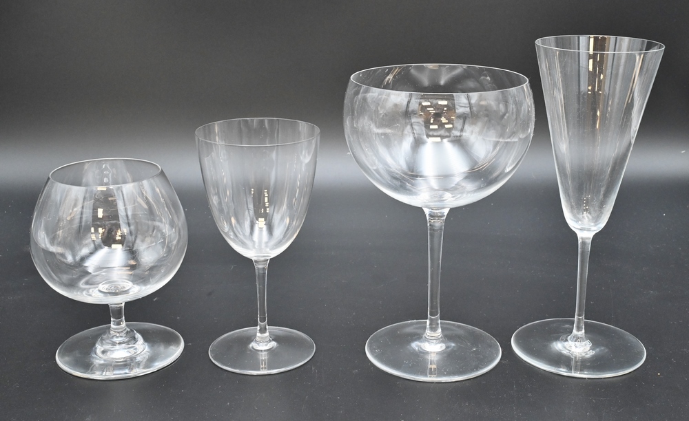 71 Piece Baccarat Perfection Crystal Set, to include 10 large red wine, 17 – 10 oz. brandy glasses, 10 fluted champagne, 19 white wine, 11 liquor cocktail, 4 finger bowls, all marked Baccarat on bottom.