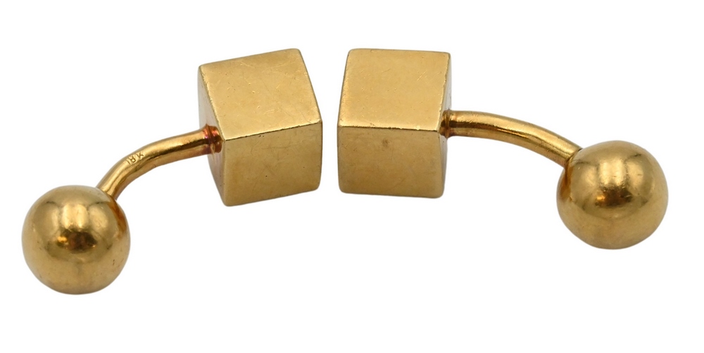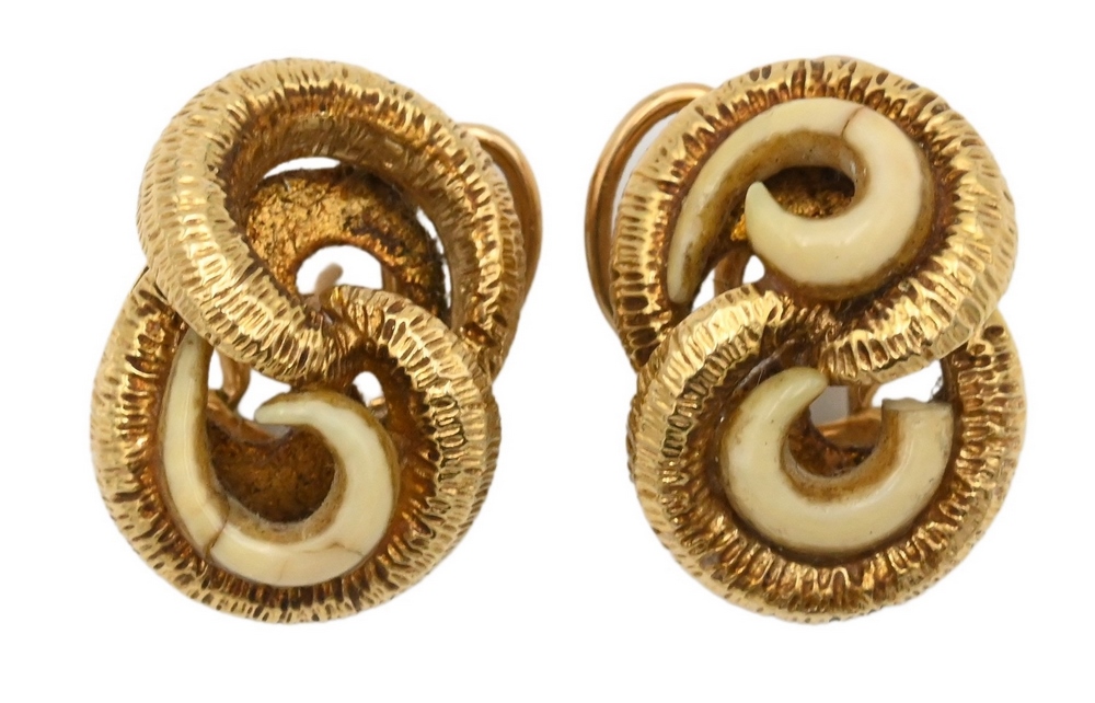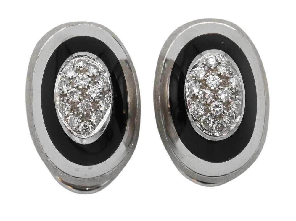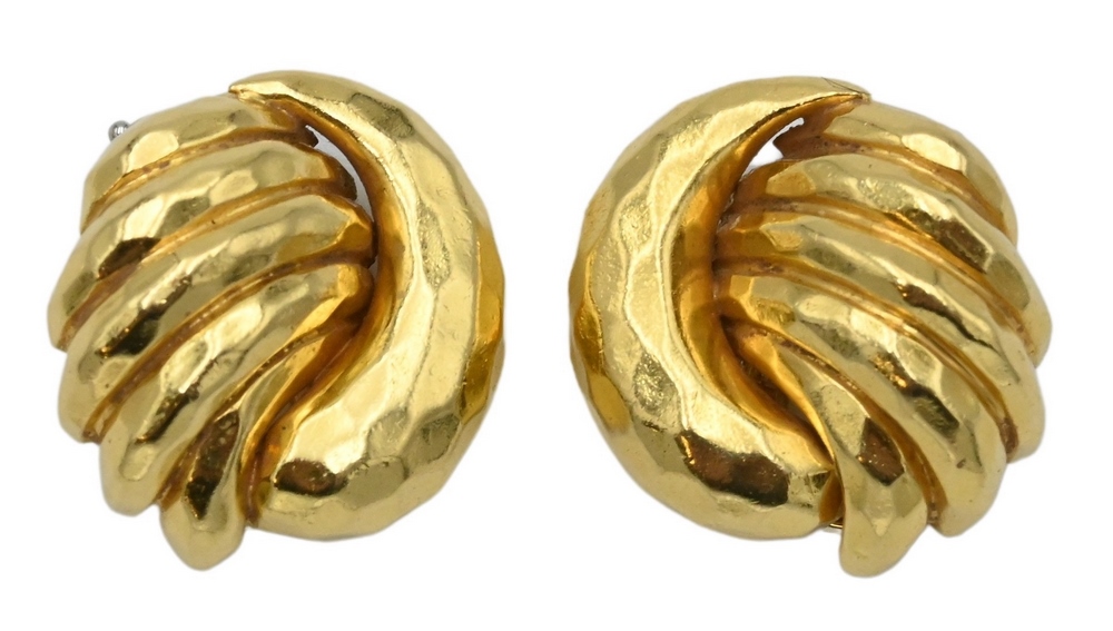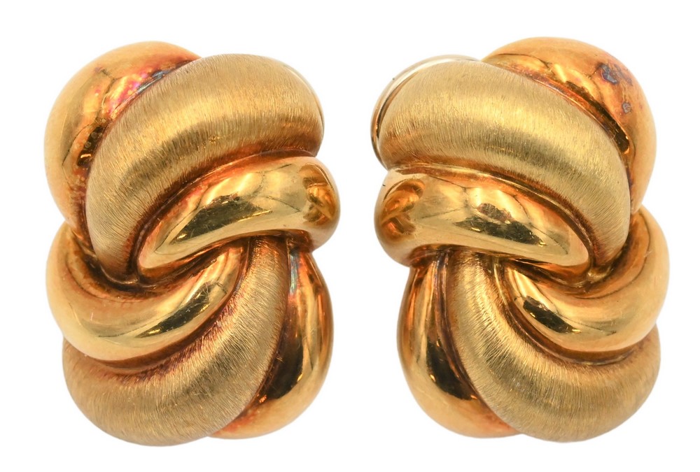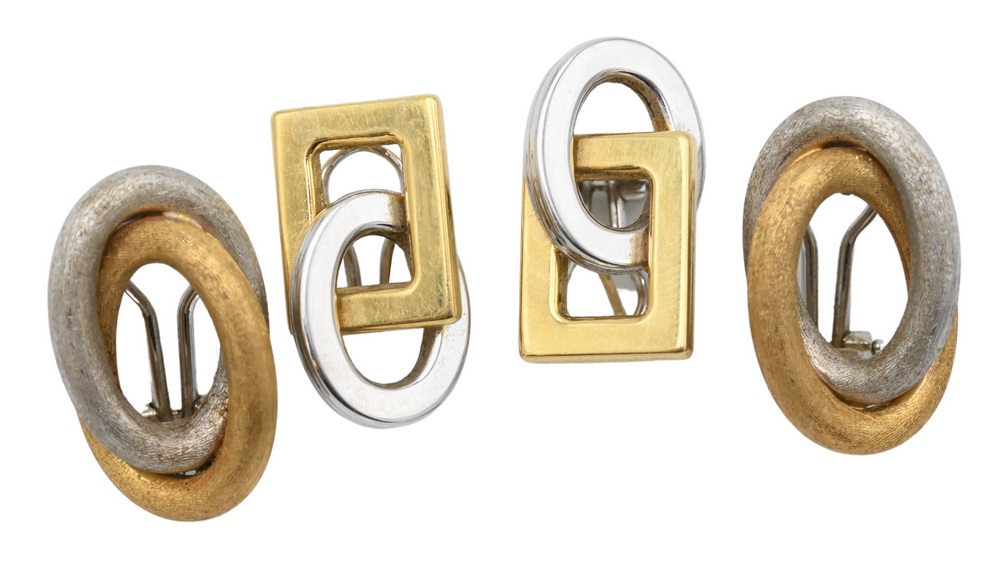 Two Pairs of 18 Karat White and Yellow Gold Pierced Earrings, to include one pair with ovals and rectangle; along with one pair with ovals, brush surface; 20 grams.