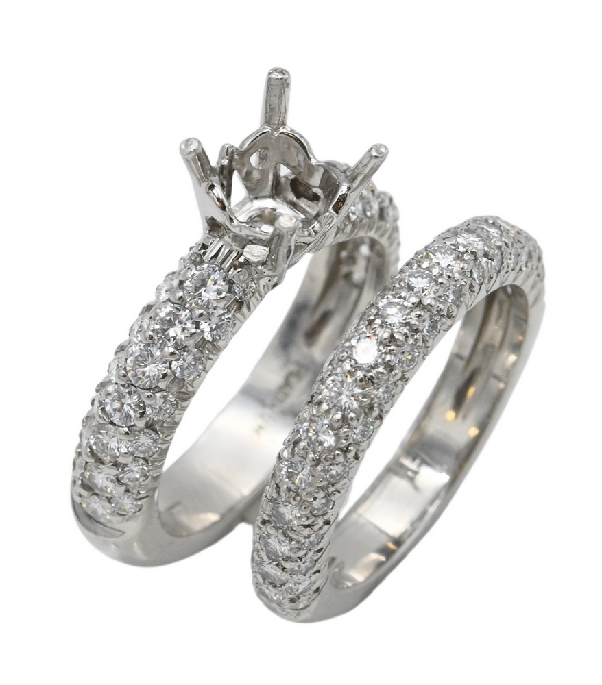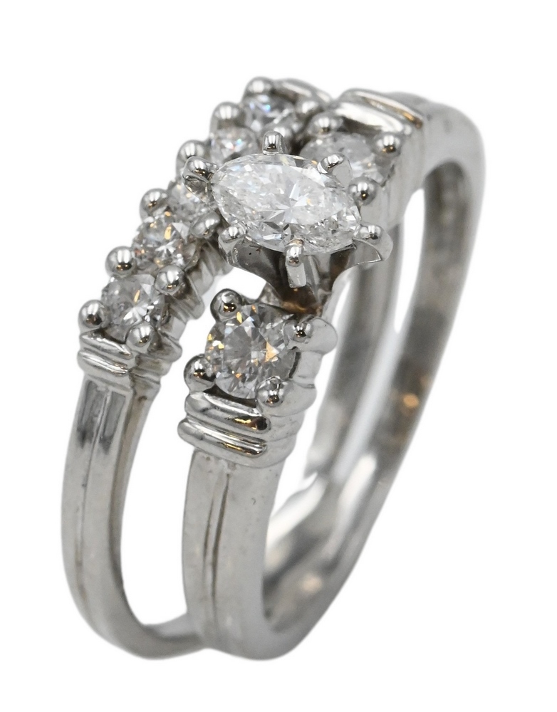 Platinum Two Piece Bridal Set, to include engagement ring with center marquise diamond, 3.3 x 6 millimeters, flanked by diamonds along with a band set with five diamonds, size 6 3/4, new $4,000.