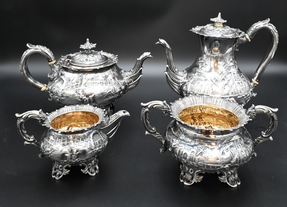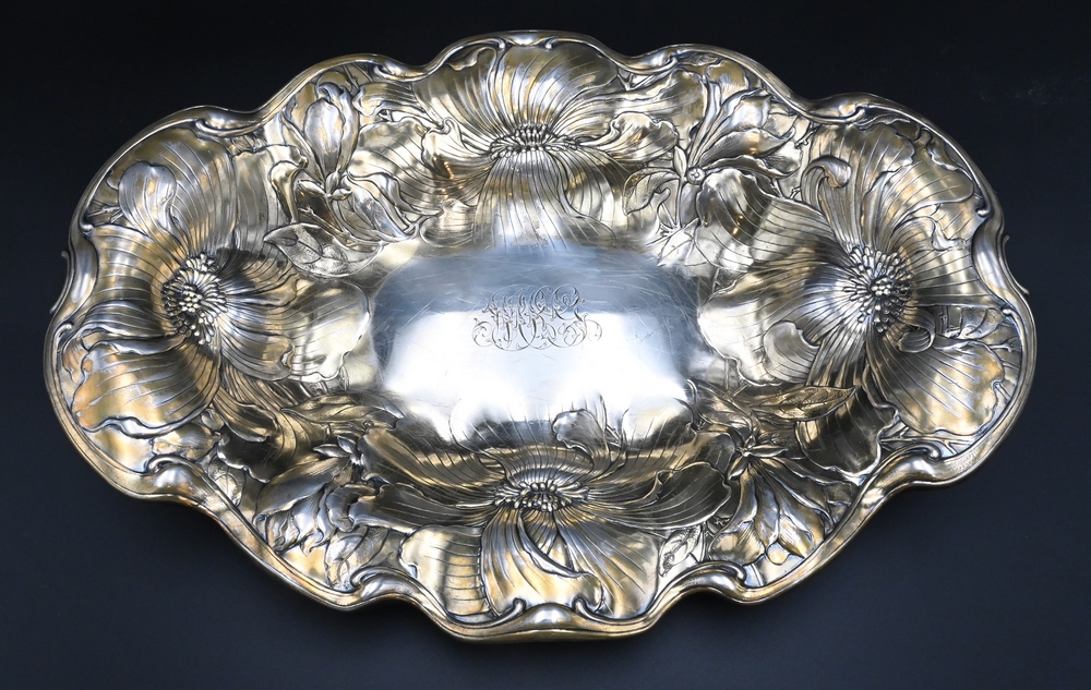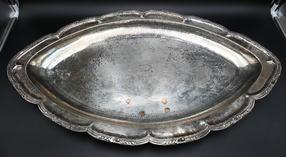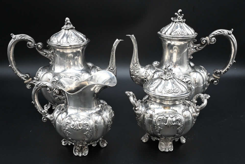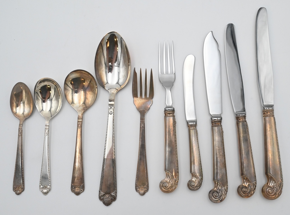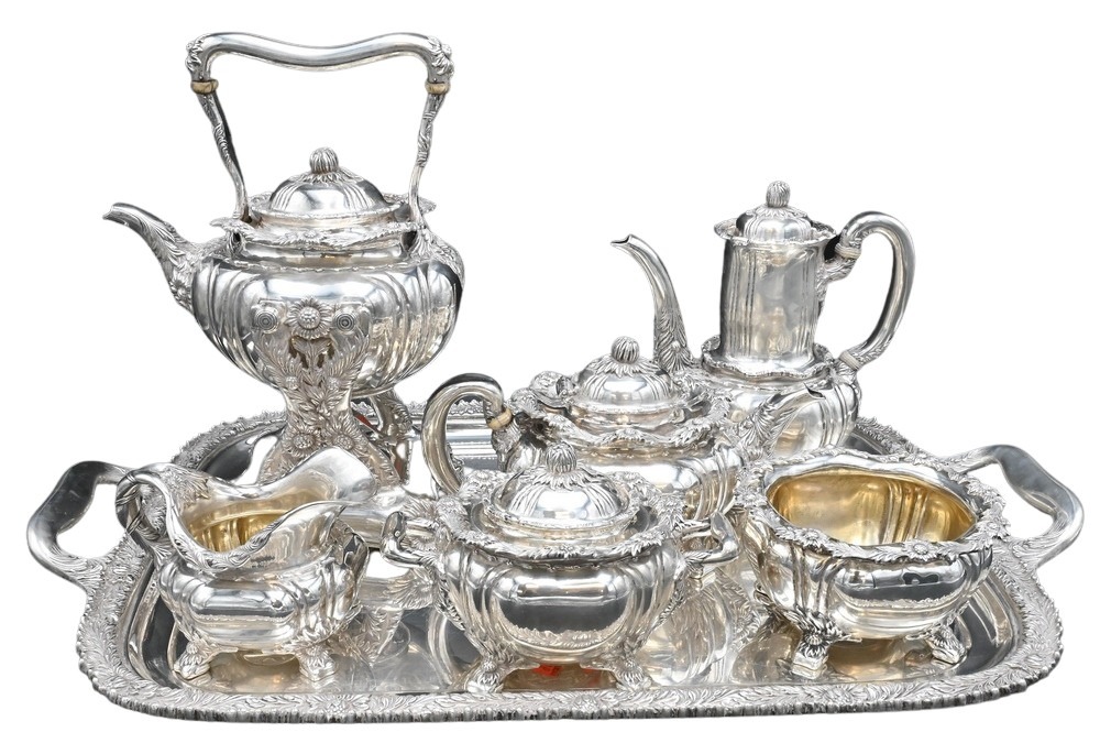 180 Piece Tiffany & Company Sterling Silver Flatware Set, hampton pattern, to include: 12 luncheon knives, 16 dinner knives, 2 large serving spoons, 2 large serving forks, 1 ladle, 2 salt and pepper shakers, 2 salts with cobalt insert, 1 fish server, 3 pie/cake servers, 12 butter knives, 16 dinner forks, 14 soup spoons, 6 iced tea spoons, 24 demitasse spoons, 24 teaspoons, 7 tablespoons, 12 salad forks, 17 fish forks, 1 sugar spoon, 1 sugar tong, 4 small salt spoons, 1 master salt spoon