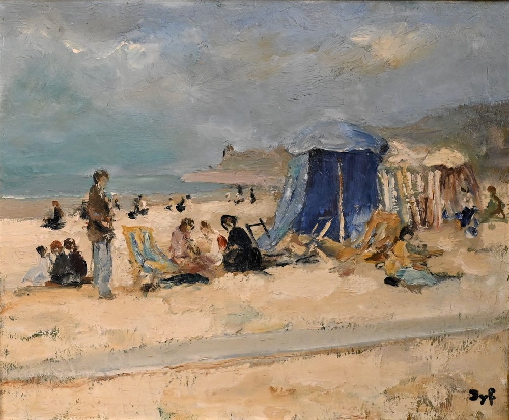 Marcel Dyf (French, 1899 – 1985), Day at the Beach, oil on canvas, signed lower right Dyf, 15″ x 18 1/2″, Provenance: Sotheby’s Arcade, October 9, 1992, paid $4,950, New York, lot 197. Private New York City collection acquired from the above.