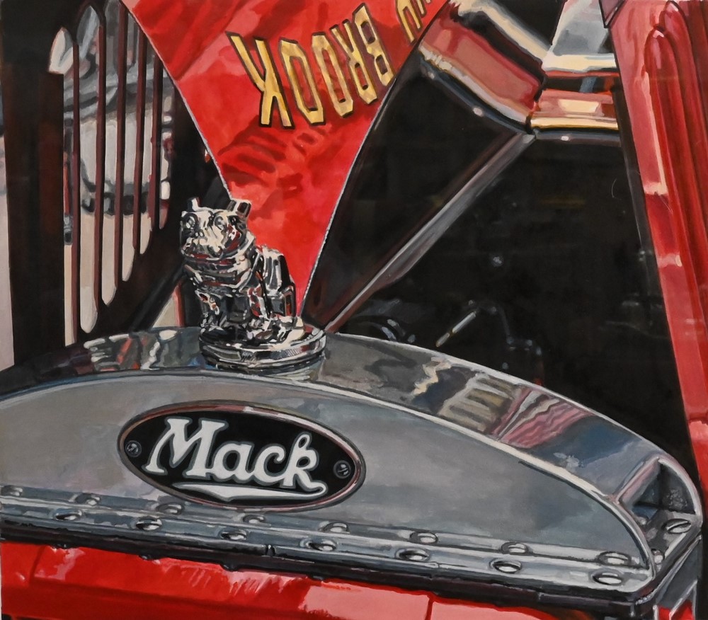 Ronald Allen Kleeman (American, 1937 – 2014), “Mic Mac”, 1991, acrylic on board, Louis K. Meisel Gallery and Bernarducci Meisel Gallery labels on the reverse, Sotheby’s New York #266 label, 2012 sold for $10,000, sight size: 16″ x 17 1/2″.