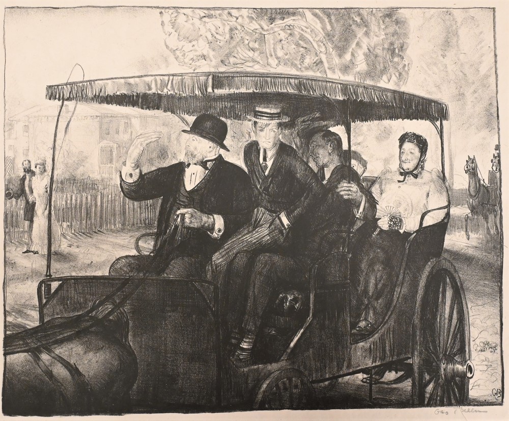 George Bellows (American, 1882 – 1925), Going to the Park, lithograph, edition of 54, signed lower right recto margin Geo Bellows, initialed GB in the plate, Bellows catalog #154, 14″ x 17″.