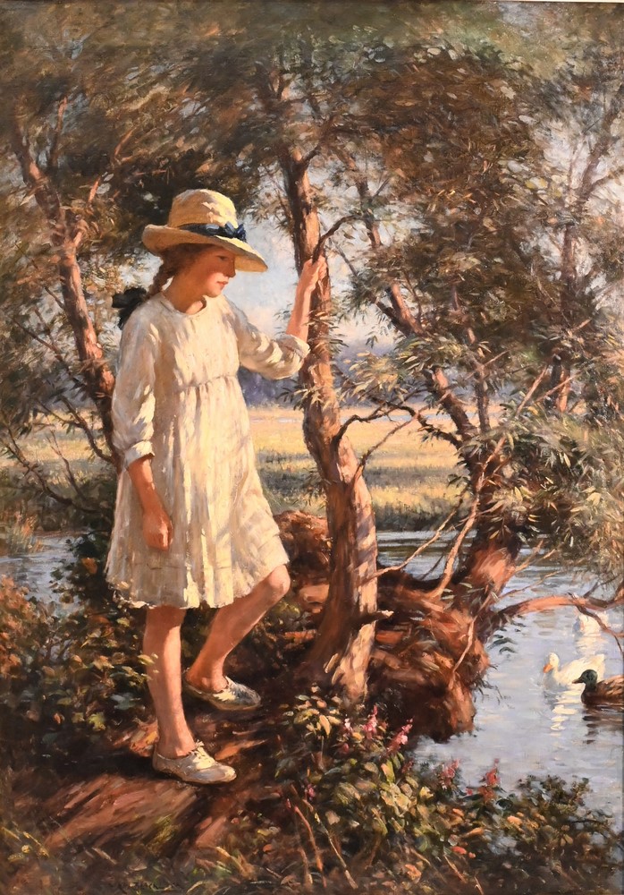 William Kay Blacklock (British, 1872 – 1922), A Quiet Backwater, oil on canvas, signed lower left W. Kay Blacklock, 33″ x 23 1/2″. Provenance: Richard Green Gallery, London, 1996, paid $45,000; Private collection New York City.