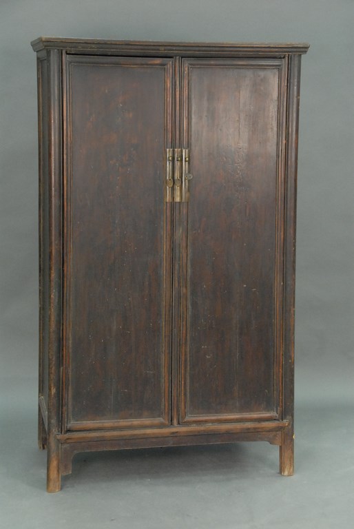 Hardwood two door cabinet, late 17th to early 18th century having interior fitted with three shelves and four drawers, possibly Huamu. ht. 72in. wd. 40 1/2in.