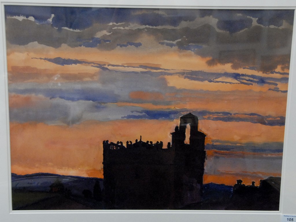 Graham Nickson 1946 DAWN, CAPUT MORTUUM AND AMBER SKY 1999 Orvieto, Umbra watercolor 18 x 24 Provenance: Salander O’Reilly Galleries LLC, N.Y. to Henry Luce, Fisher’s Island, N.Y. to present owner