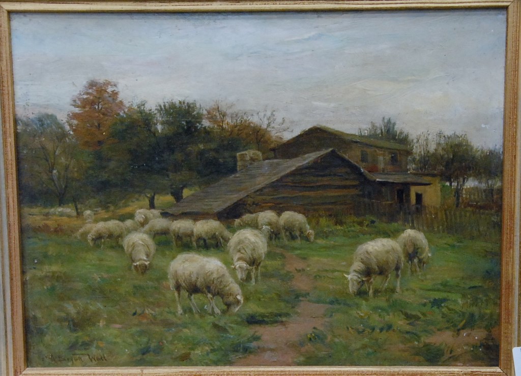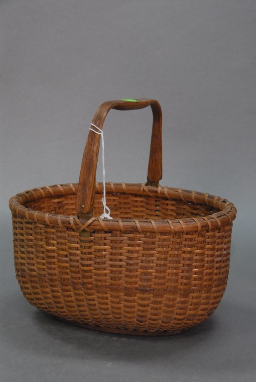 Nantucket basket, oval with swing handle, marked on bottom with paper label Mitchell Ray. ht. 9in. wd. 12in. Provenance: Estate of Nancy Sachse, Hamden, Connecticut