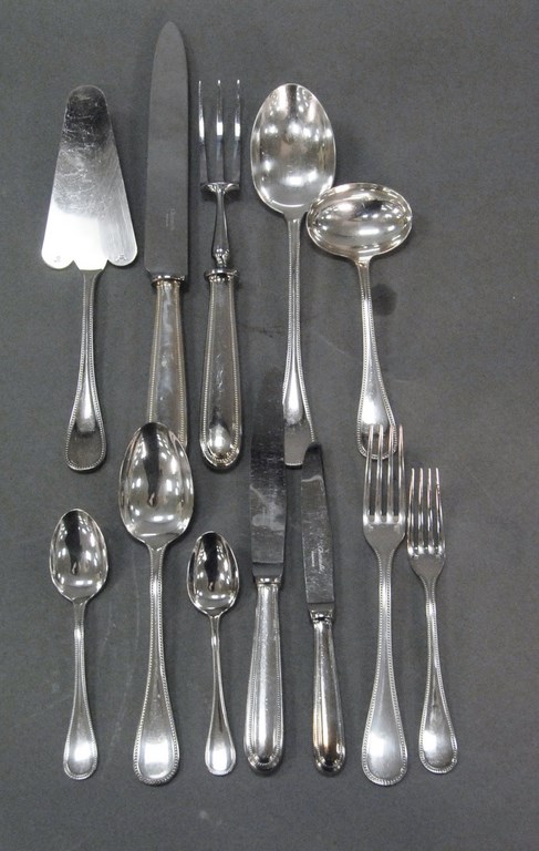 Pair of clear pressed glass decanters with stoppers and sterling silver labels, early 19th century. Provenance: Estate of Nancy Sachse, Hamden, Connecticut ht. 13in.