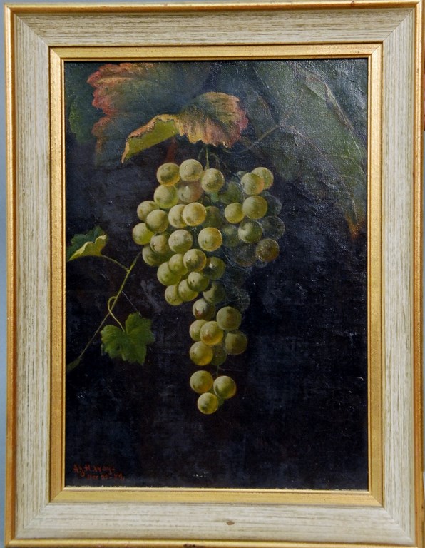 Andrew John Henry Way 1826-1888 STILL LIFE OF GRAPES oil on canvas signed lower left A. J. H. Way Dec. 25 – 79 14 x 10 Provenance: Estate of Nancy Sachse, Hamden, Connecticut