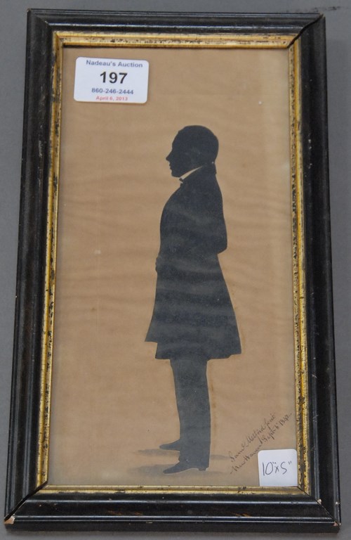 Silhouette, full length of gentleman turned to his right, signed on bottom Samuel Metford, New Haven, Sept. 1842. Provenance: Estate of Nancy Sachse, Hamden, Connecticut 10 x 5