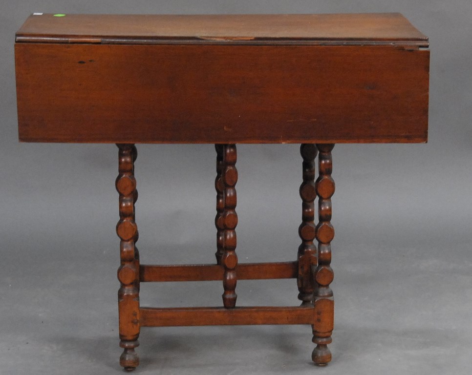 William and Mary table with rectangular drop leaves on base with drawer and block and turned legs, box stretcher and turned feet, partially restored with new top. ht. 27in. top: 30 x 30 Provenance: Phelps-Brown Family, Windsor, Connecticut