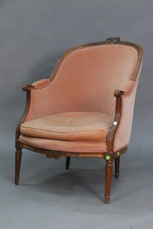 Chippendale walnut armchair with shell carved top rail over pierce carved splat with upholstered slip seat, scalloped apron set on short shell carved cabriole legs ending in ball and claw feet, arm with carved hand rests, Pennsylvania circa 1760. Provenance: Estate of Nancy Sachse, Hamden Connecticut.