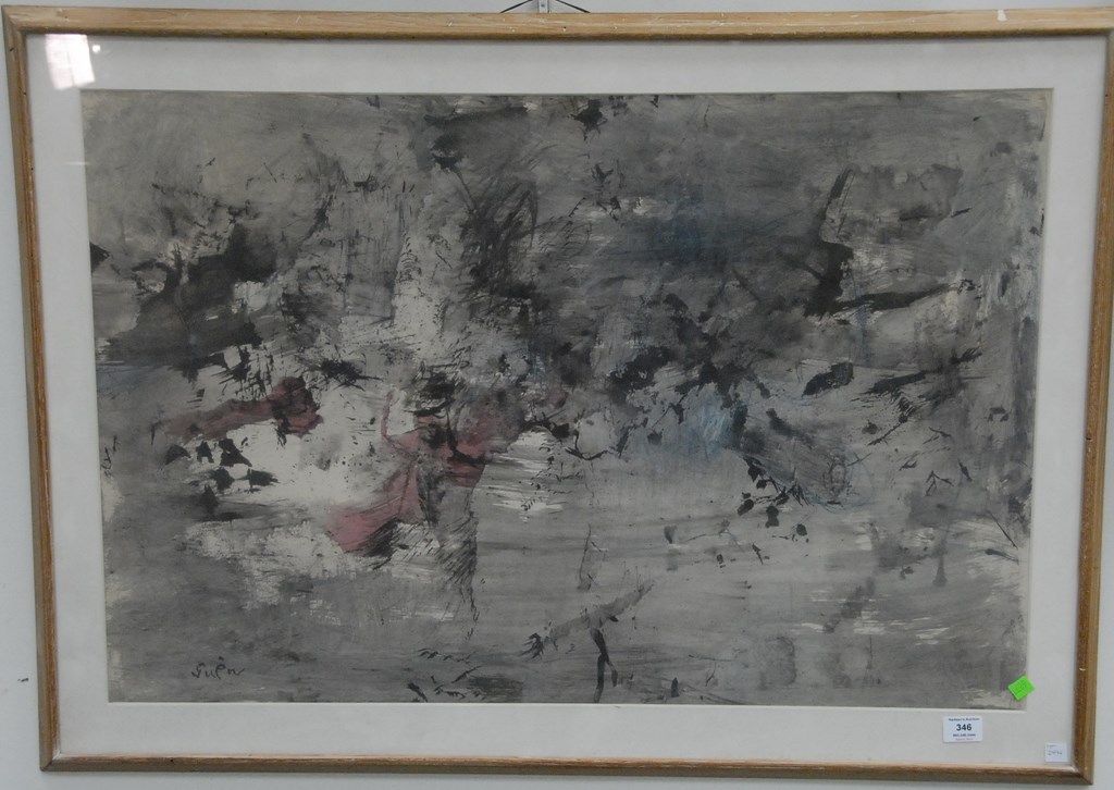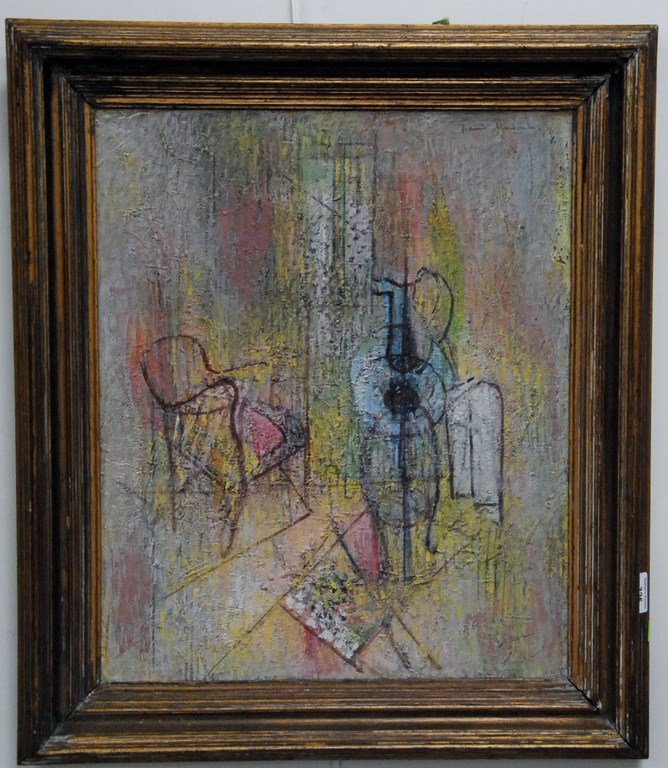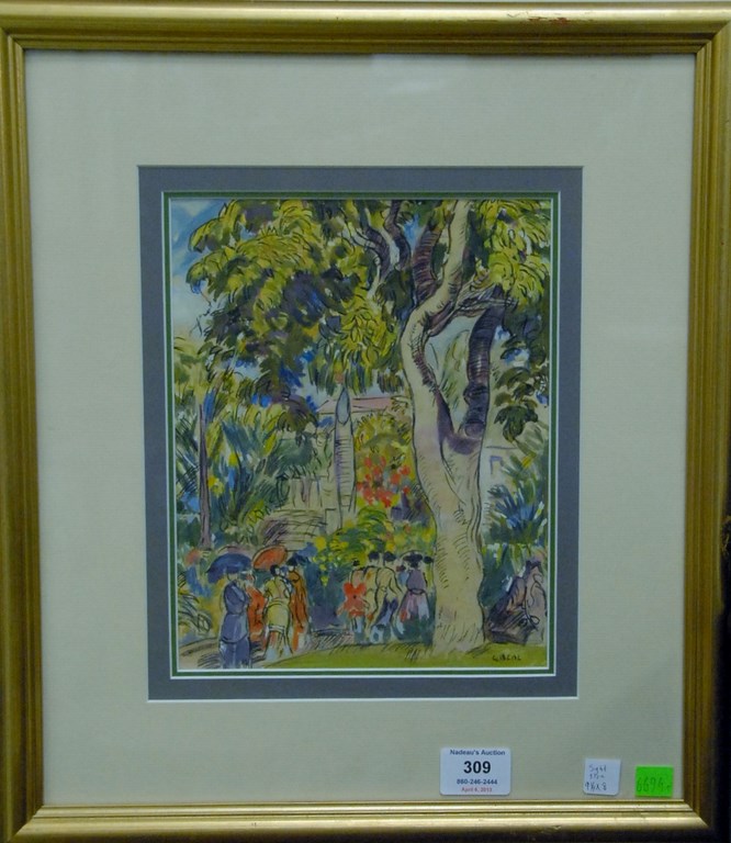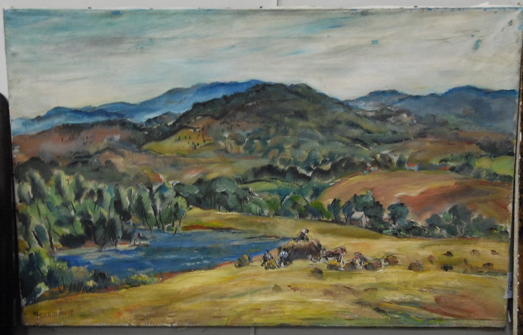 Marion Huse 1896-1967 HAYING WITH MOUNTAINS IN BACKGROUND oil on canvas signed lower left Marion Huse 18 X 28 Being auctioned to benefit the New Britain Museum of American Art.