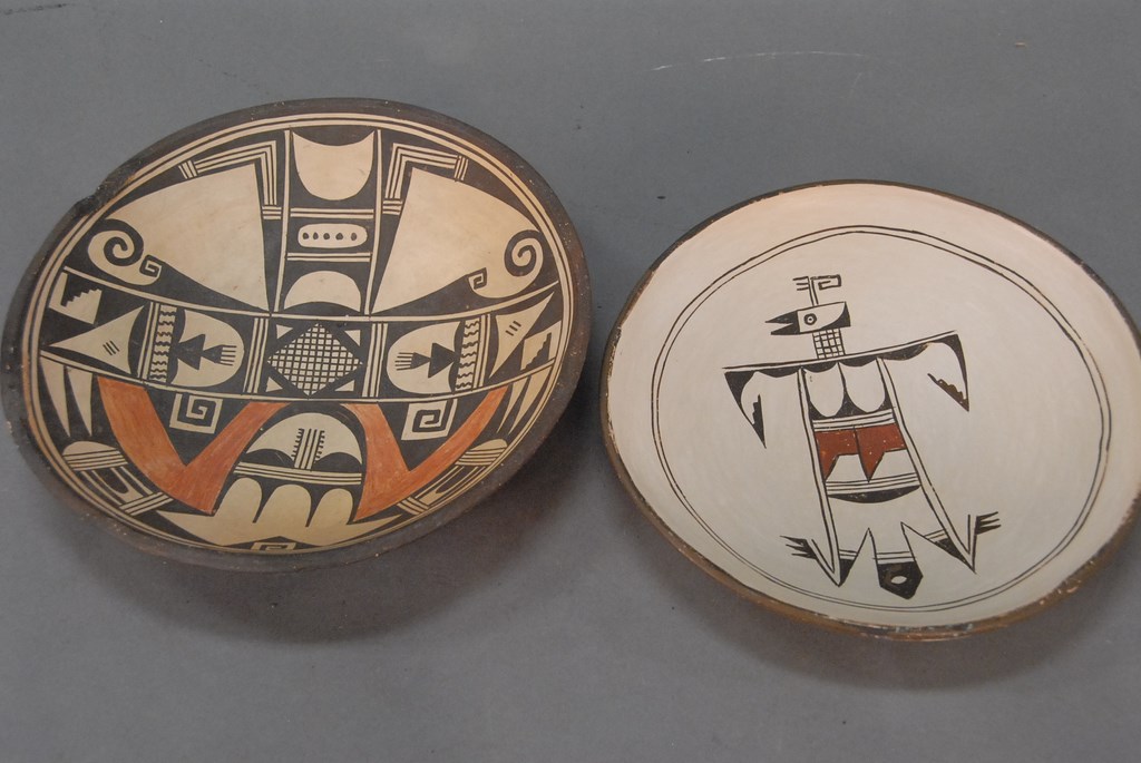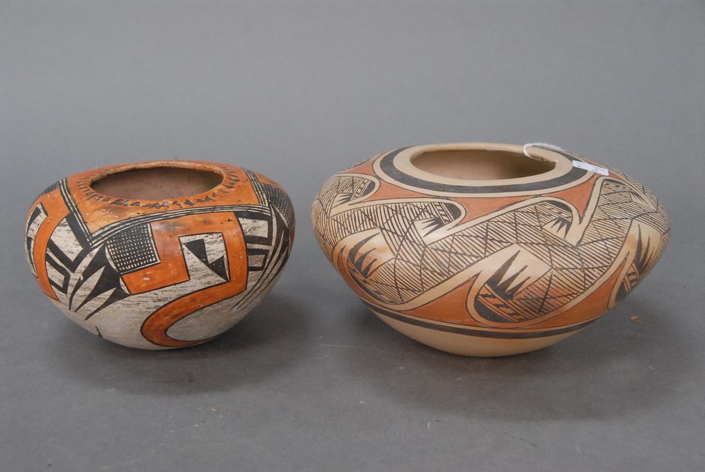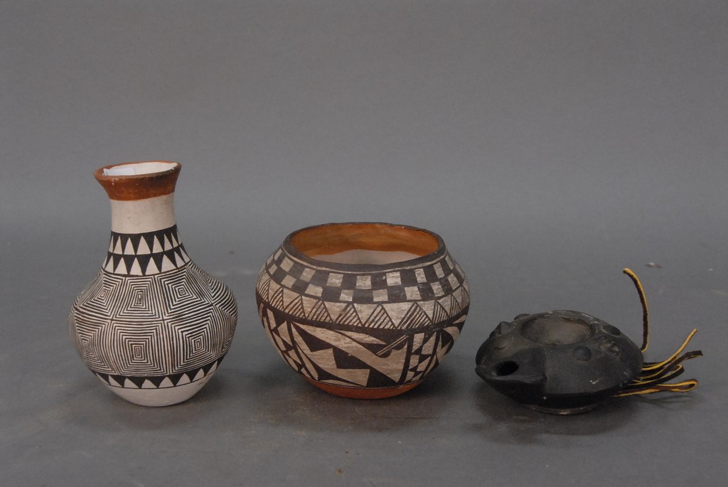 Three piece lot to include an American Indian bowl, an American Indian vase and a pottery lamp. lamp: ht. 2in. dia. 5in. vase: ht. 6in. bowl: ht. 4in. dia. 5in.
