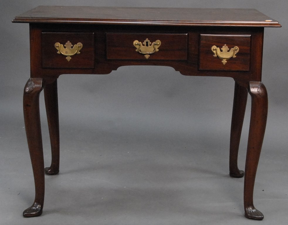 Chippendale maple desk with slant lid over four long drawers on cut out bracket base and original hardware, interior with six drawers and pigeon holes. ht. 45in. wd. 36in. Provenance: Estate of Nancy Sachse, Hamden, Connecticut