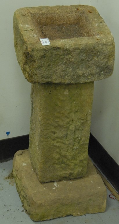 Sheraton mahogany corner wash stand with faux drawers over door over one drawer and two faux drawers all on turned legs, circa 1830. ht. 32in. wd. 25in. dp. 18in.