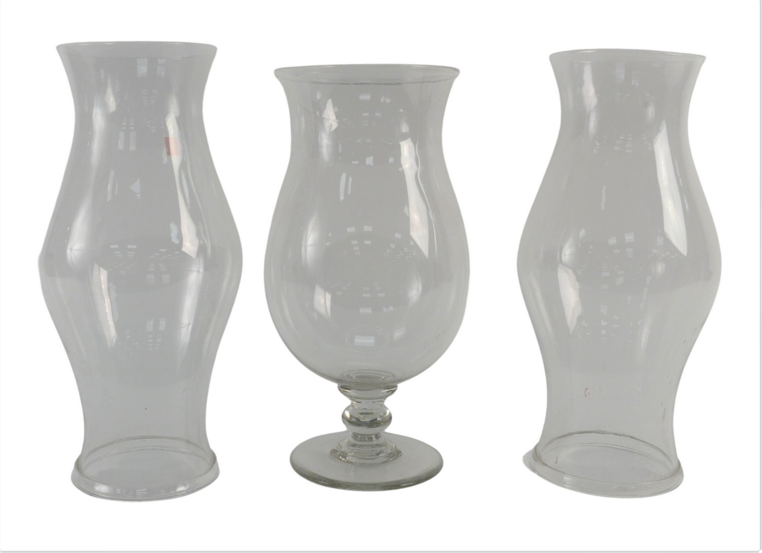 Three Piece Lot to include a pair of hurricane shades/chimneys, along with large pedestal vase, height 17 inches. Provenance: From a Newport, Rhode Island historic home, in the same family since 1761.
