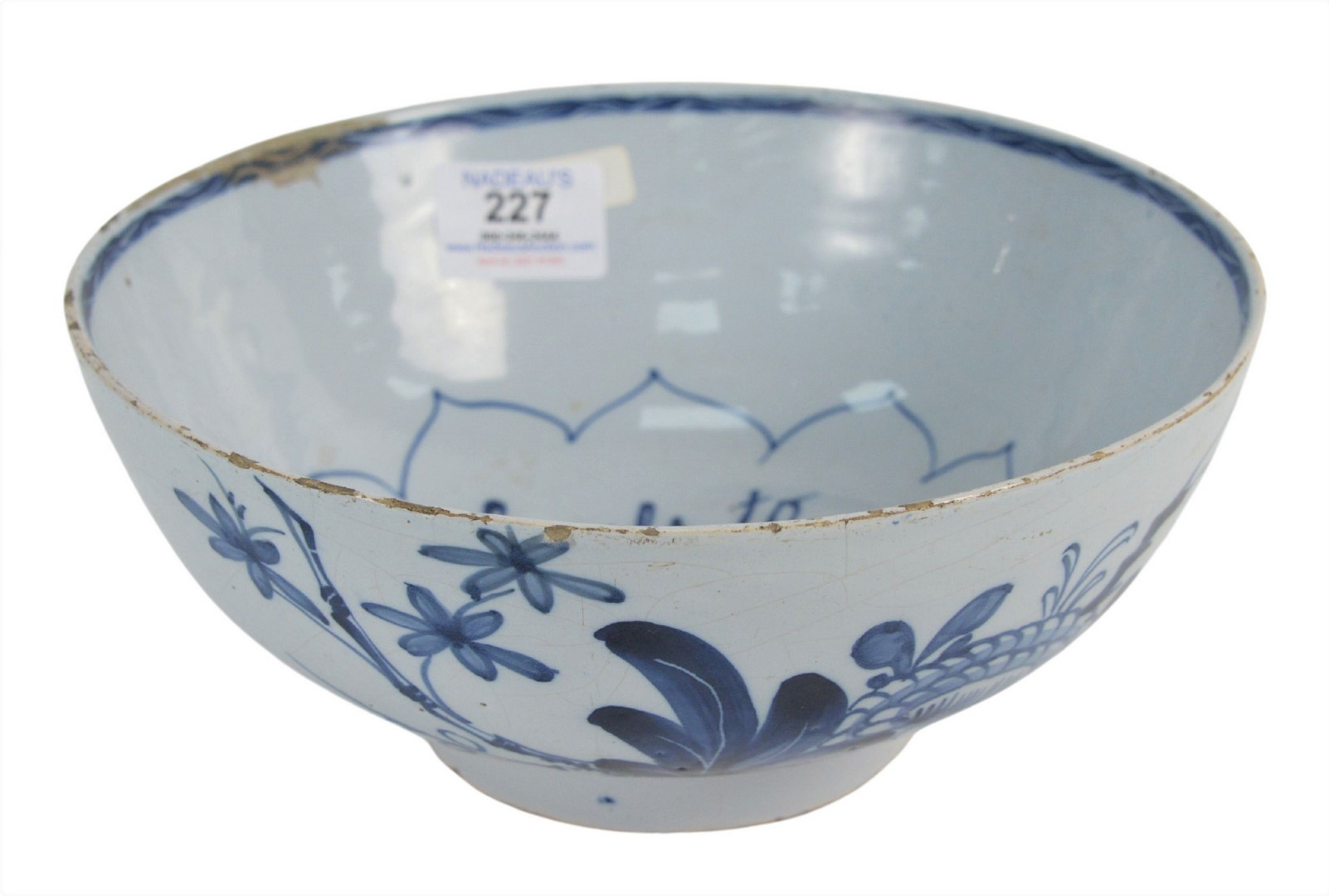Delft Bowl interior marked Success to British Arms in America, 18th Century, small rim repair, height 4 inches, diameter 9 inches. Provenance: From a Newport, Rhode Island historic home, in the same family since 1761.