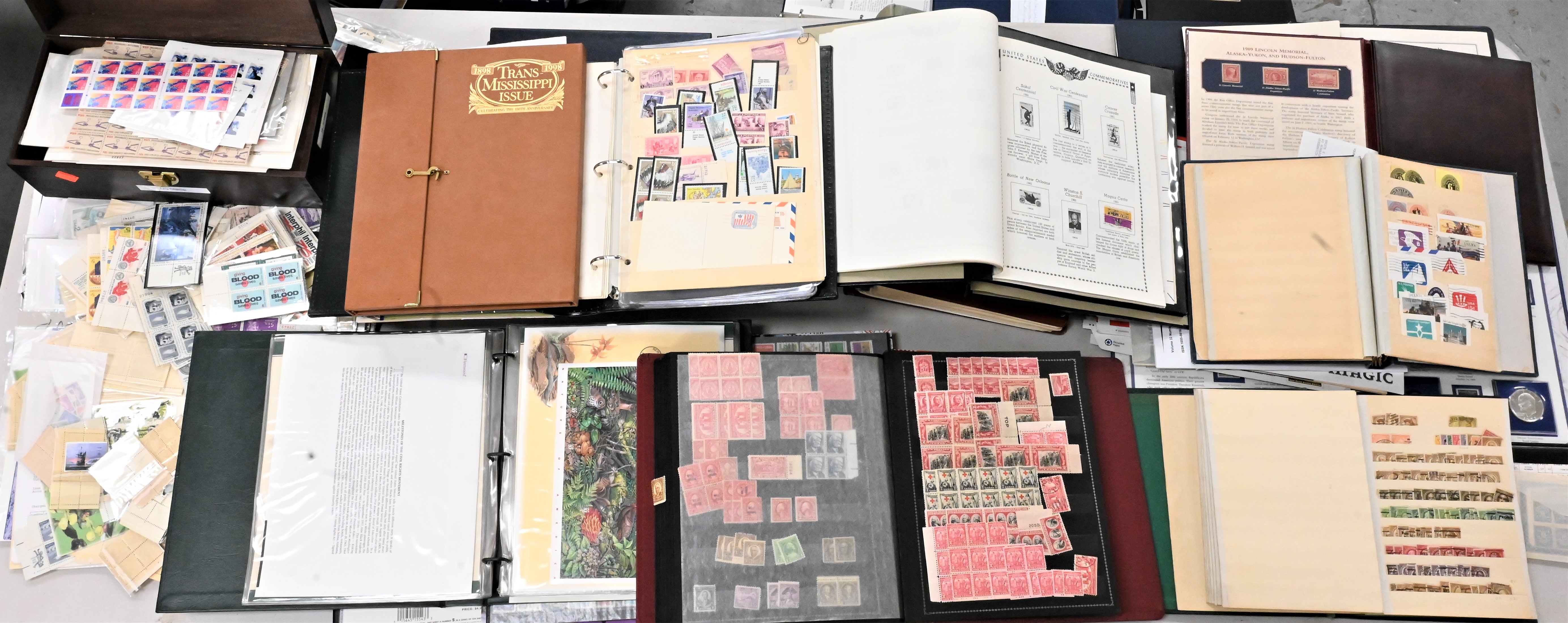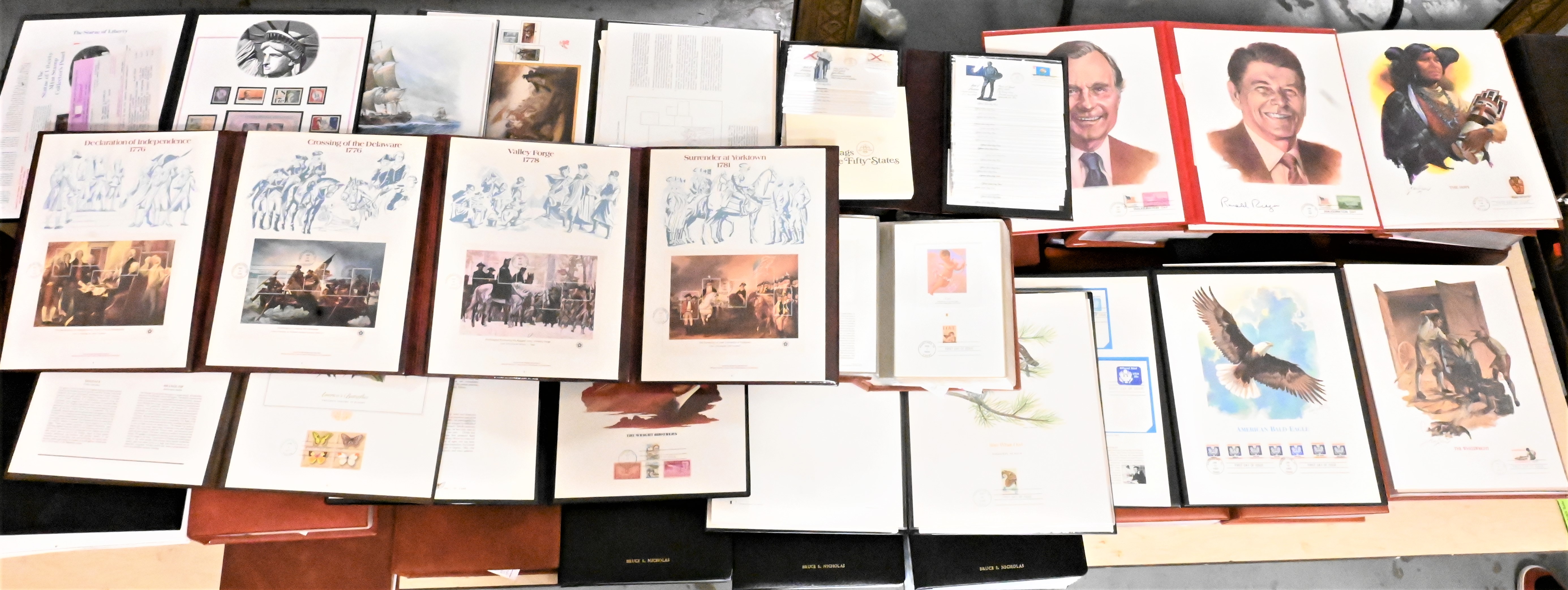 Large Lot, plastic file box containing loads of modern United States commemorative panels, along with binders containing large grouping of United States official souvenir pages