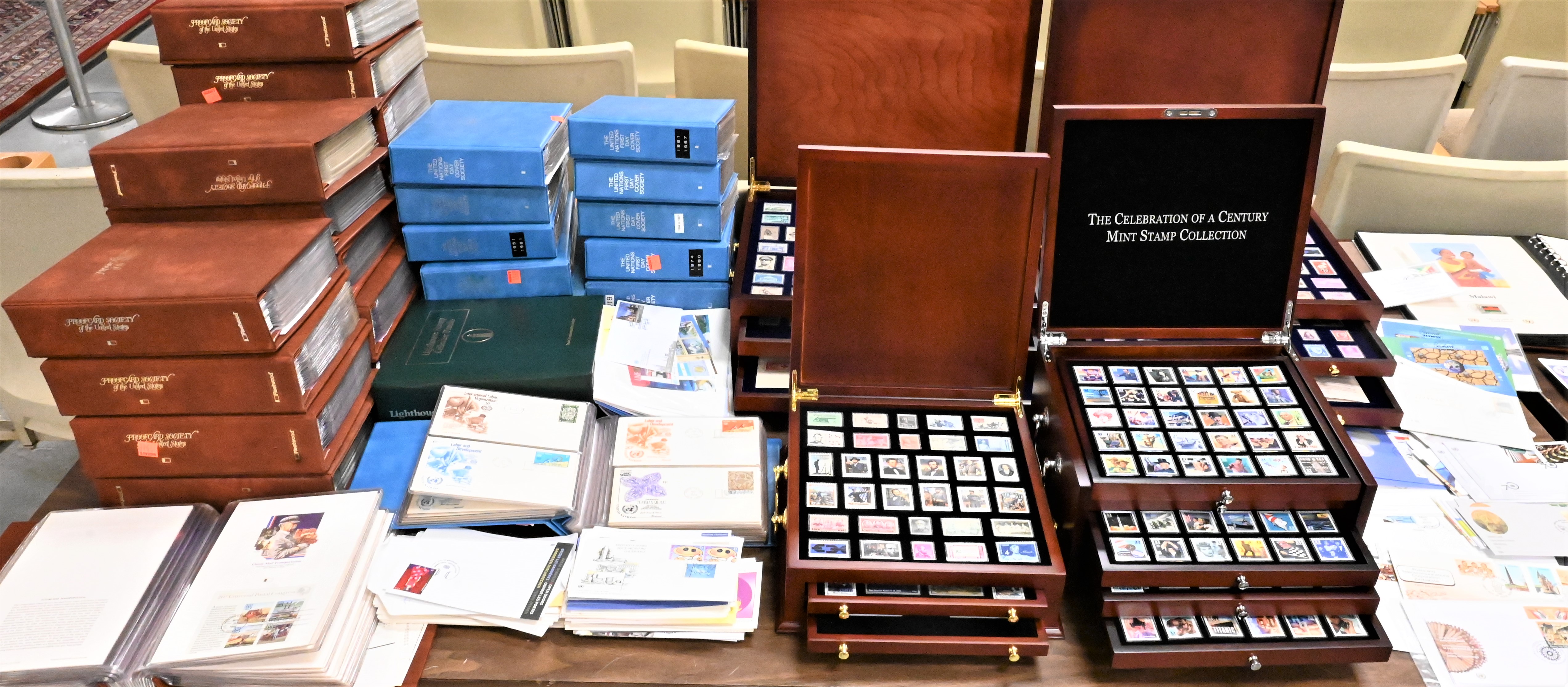 Large Grouping of United States Stamps, in beautiful wood display boxes, along with a tub full of First Day Proof Cards and a United Nations accumulation of stamps and covers