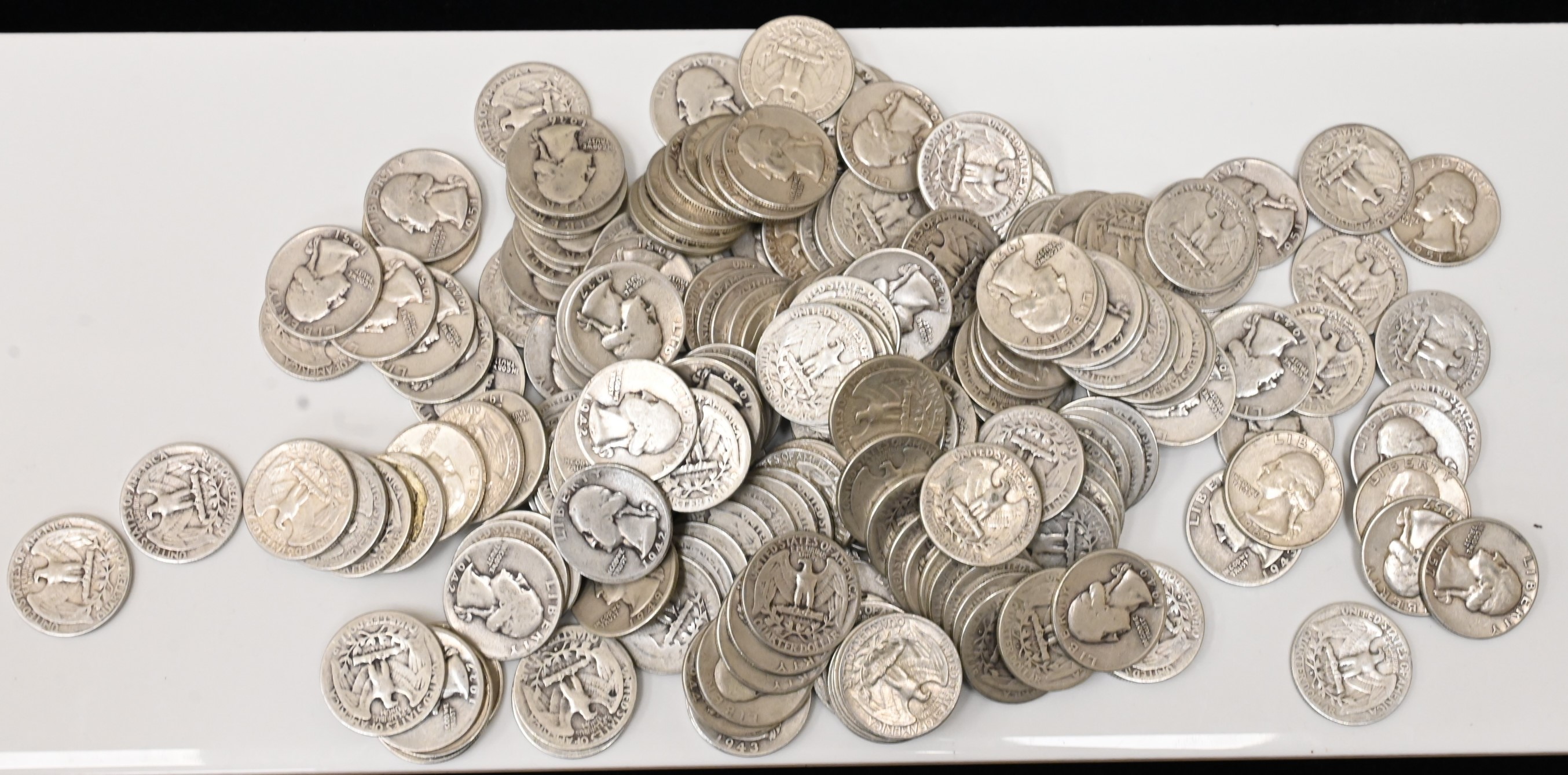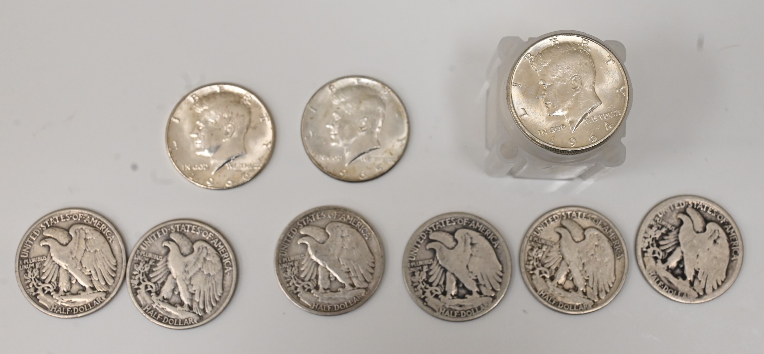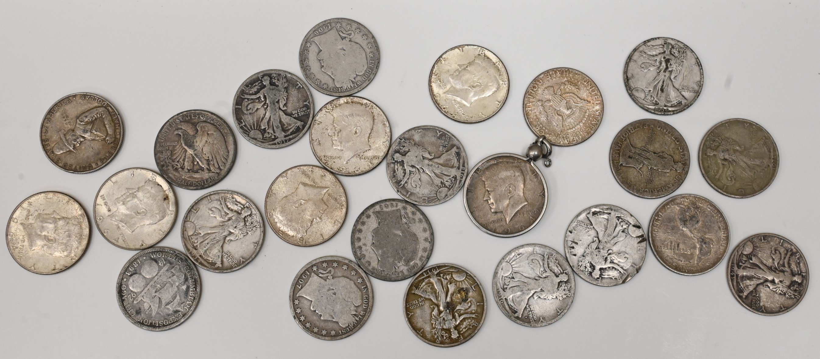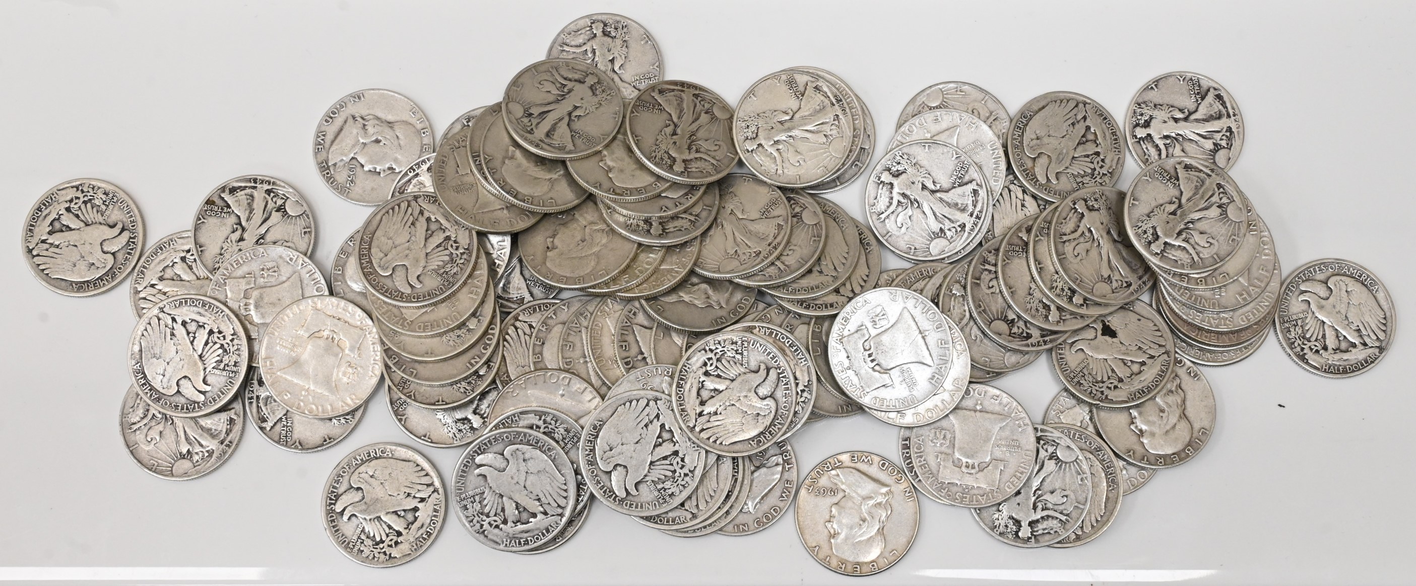 Coin Lot of U.S. 90% Silver Half Dollars, to include U.S. 90% silver half dollars, along with 40% halves comprising of twenty 1964 halfs, six walking Liberty halves, along with 40% halves.