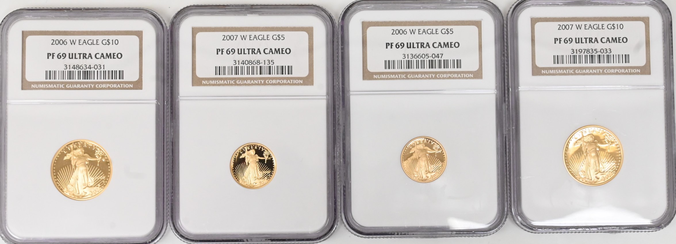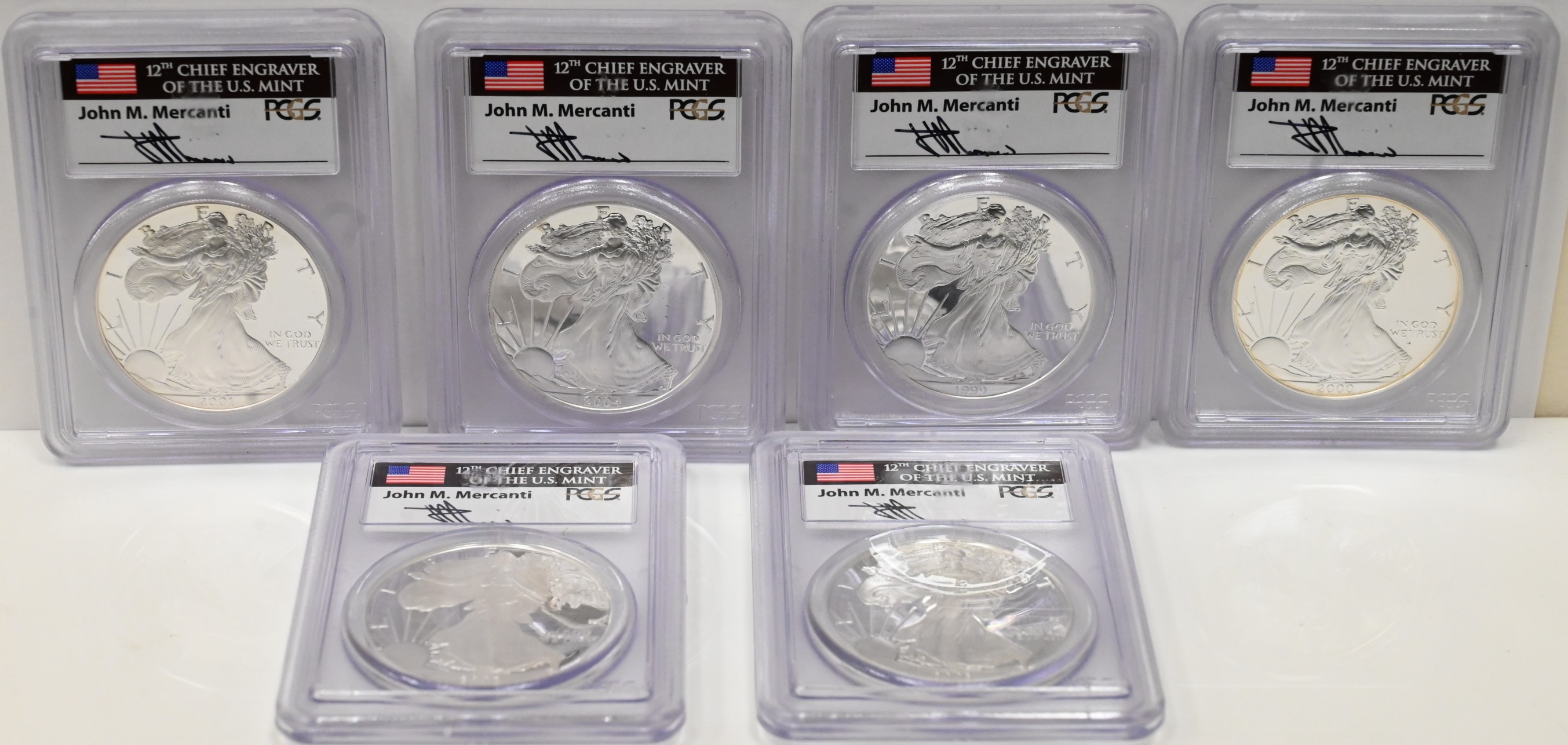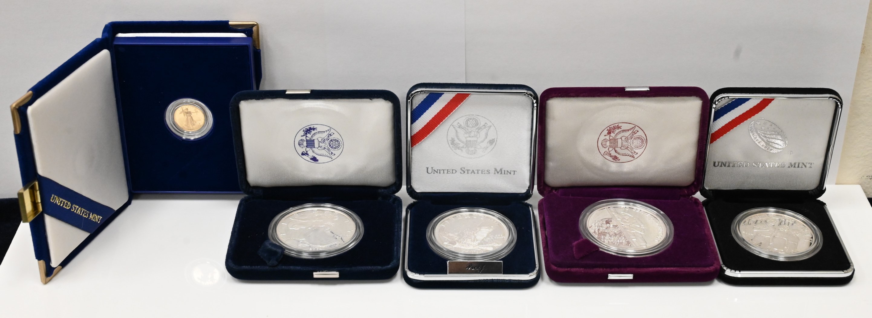 Five Silver Proofs, to include 2014 silver Civil Rights, 2004 American Eagle silver proof, 1992 Ben Franklin silver proof, 2008 Bald Eagle silver proof and one 1/10 ounce Gold 1995 American Eagle silver proof.