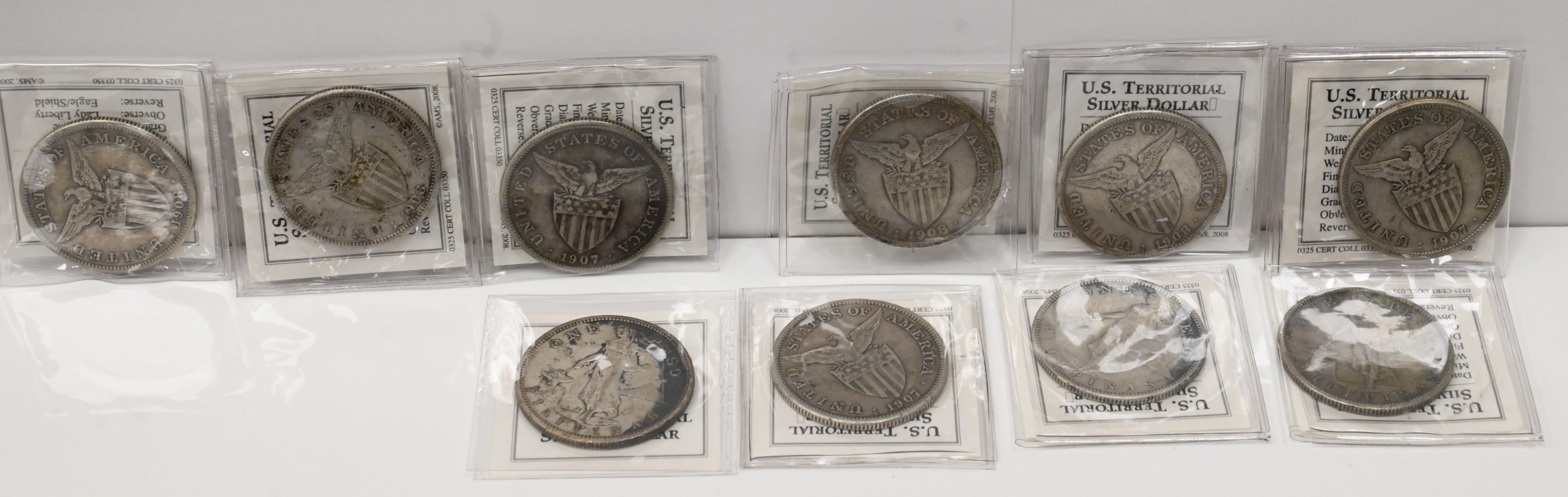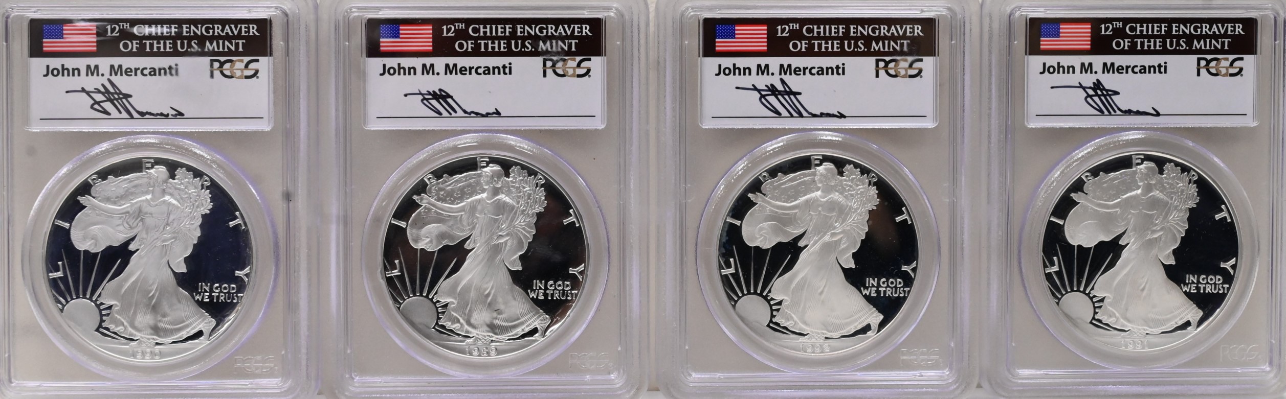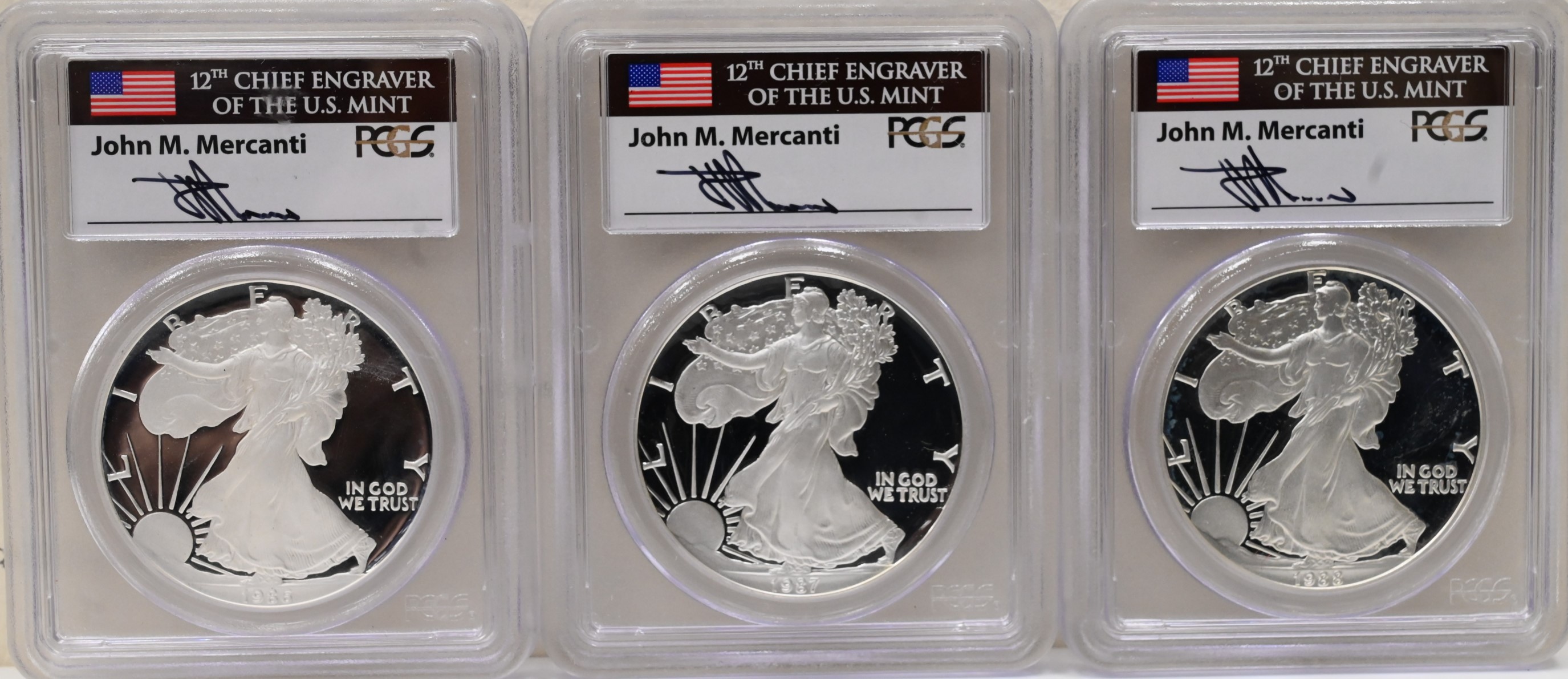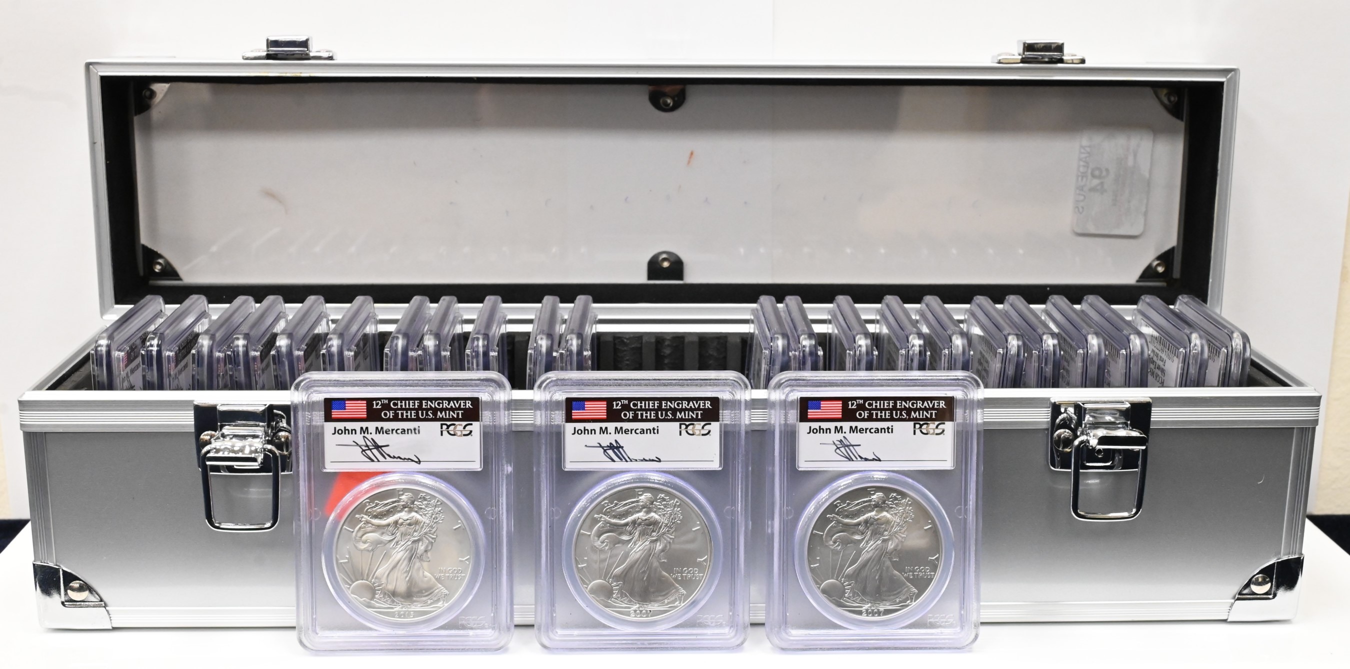 14 Piece Silver Coin Lot, to include presentation case with modern U.S. dollars commemorative all NGC Proof 69 Ultra Cameo, also 4 piece box with NGC MS70 Silver commemoratives, plus 10 pieces of Statue of Liberty commemoratives, In proof.