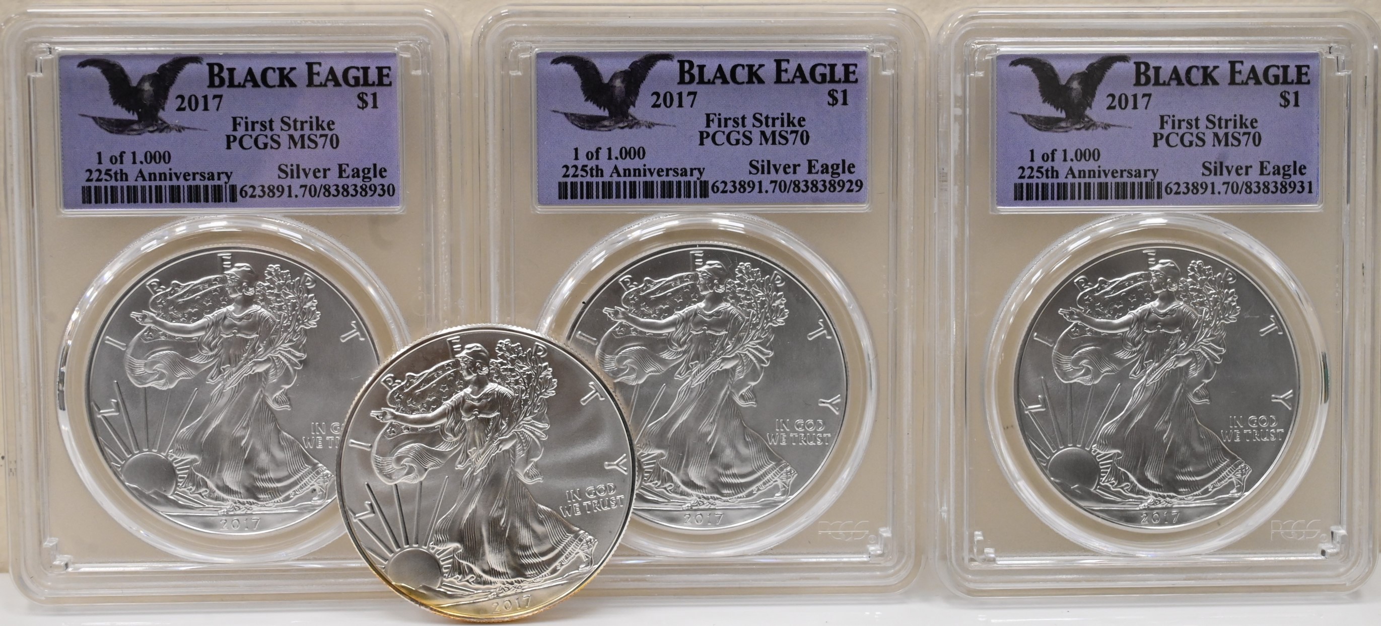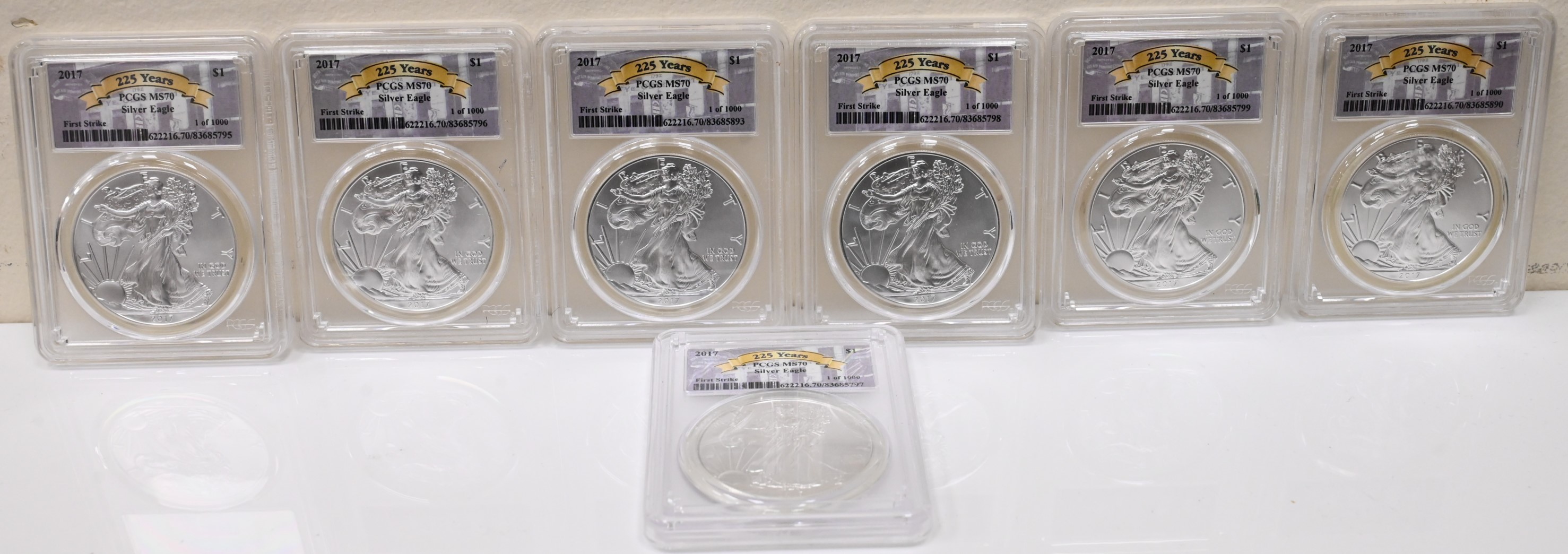 Miscellaneous Coin Lot, to include 5 2003 silver Eagles, 1, 2015 silver Eagle, 5 Buffalo silver rounds one ounce, 2 Australia one ounce rounds and one Prospector one ounce bar, total weight 14 t.oz.