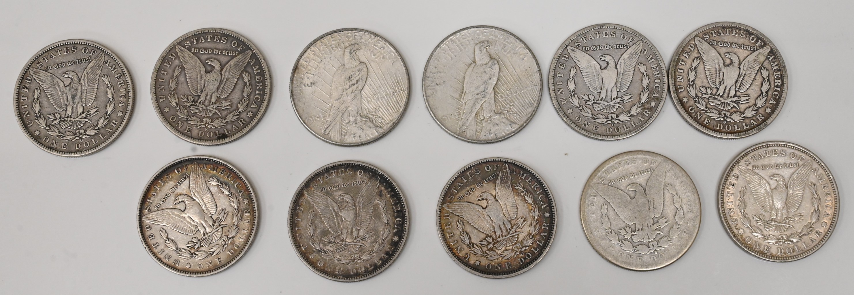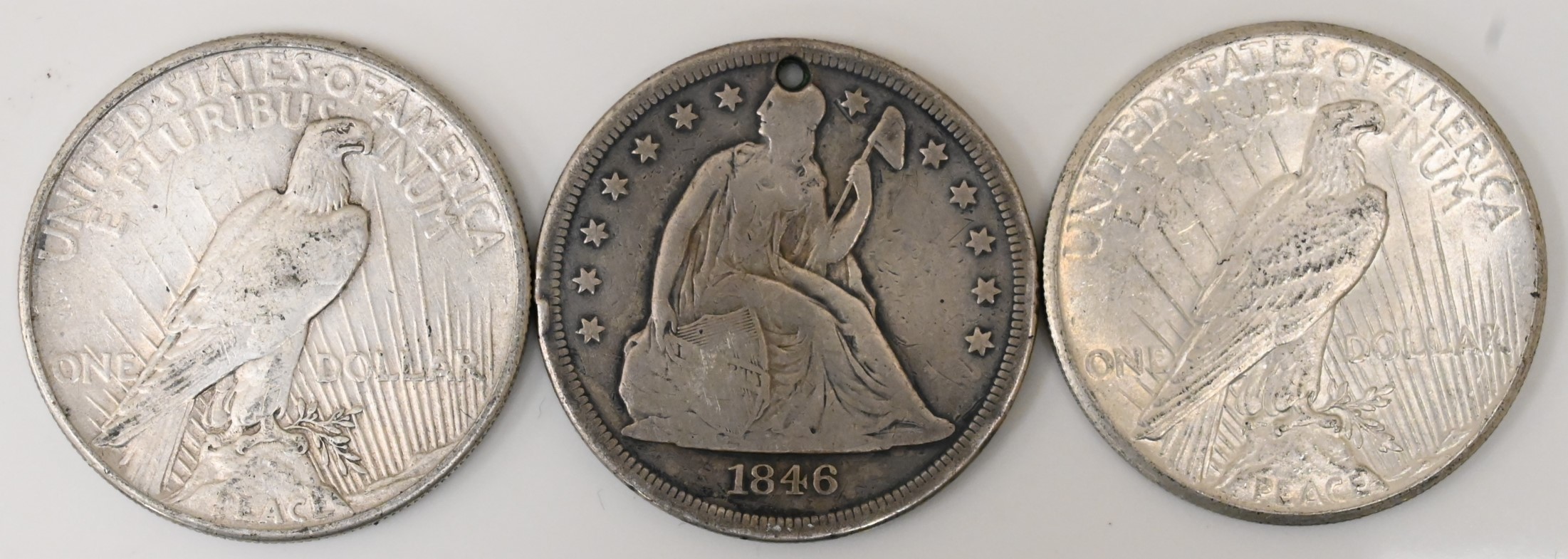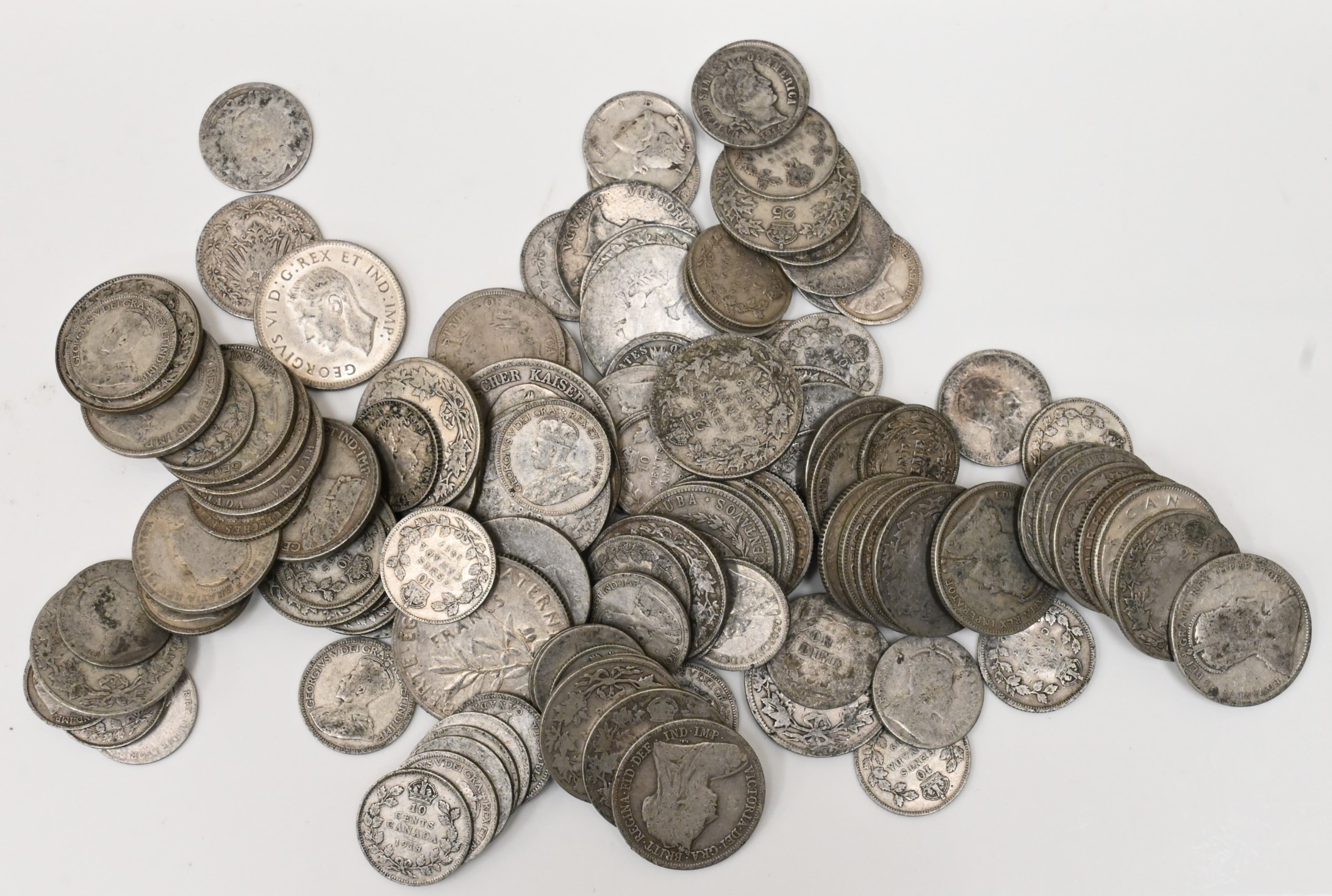 Mixed Mexican, Central and South American Silver and Copper Coins, to include 1870 uncirculated pesos (90%), 10 Mexican uncirculated pesos (10%), total weight 15.5 t.oz.