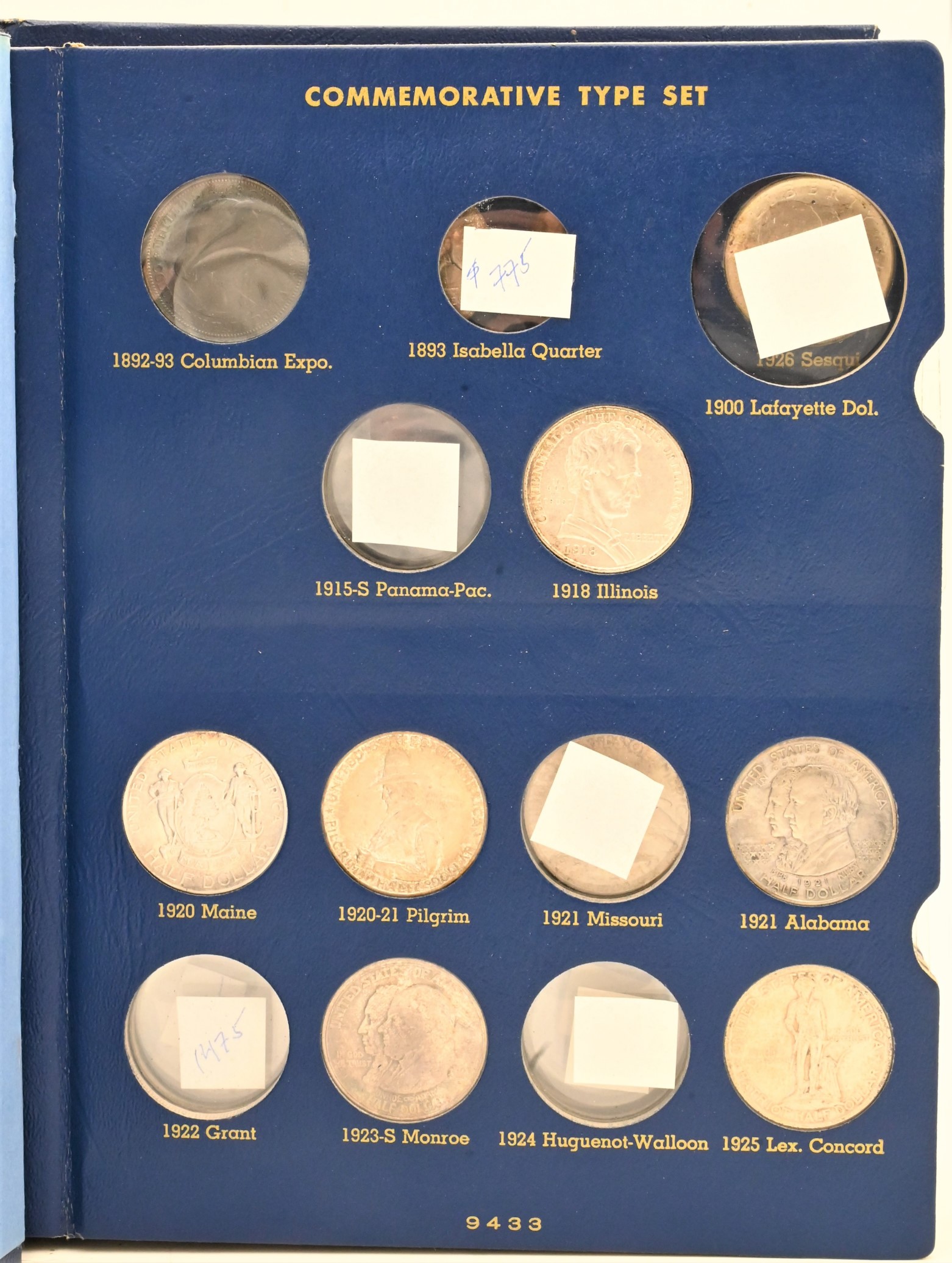 A Partial U.S. Silver Commemorative Album, with 26 coins in it XF to UNC, 1918 Illinois AU 1936 San Diego UNC, 1920 Maine AU,1936 Rhode Island UNC, 1920 pilgrim UNC, 1936 Cleveland UNC, 1921 Alabama XF , 1936 York UNC, 1923-S Monroe XF, 1936 Lynch UNC, 1925 Lexington AU, 1936 Elgin, 1925 Stone mt xf ,1936 Albany, 1925-S California UNC, 1936 Columbia SC UNC, 1926 Sesqui UNC, 1936 Robinson UNC, 1934 Maryland UNC, 1935-D boone UNC, 1946 Iowa UNC, Connecticut UNC, 1946 BT Washington UNC, 1936-s Arkansas UNC, 1951 Wash Carver UNC, George Washington modern