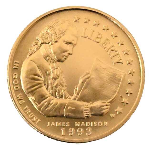 1993-W Five Dollar Bill of Rights Gold Coin Choice UNC