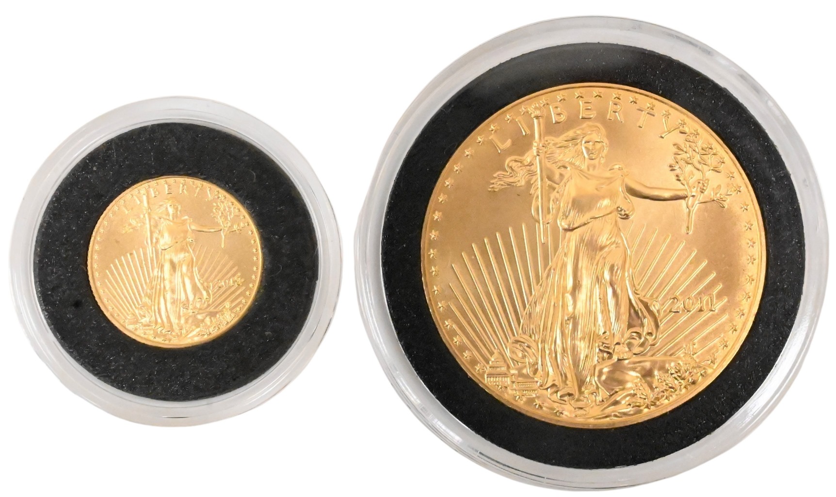 Two Piece Gold Lot, to include 2013 1/10 ounce American Eagle along with 2011 $50 gold one ounce American Eagle
